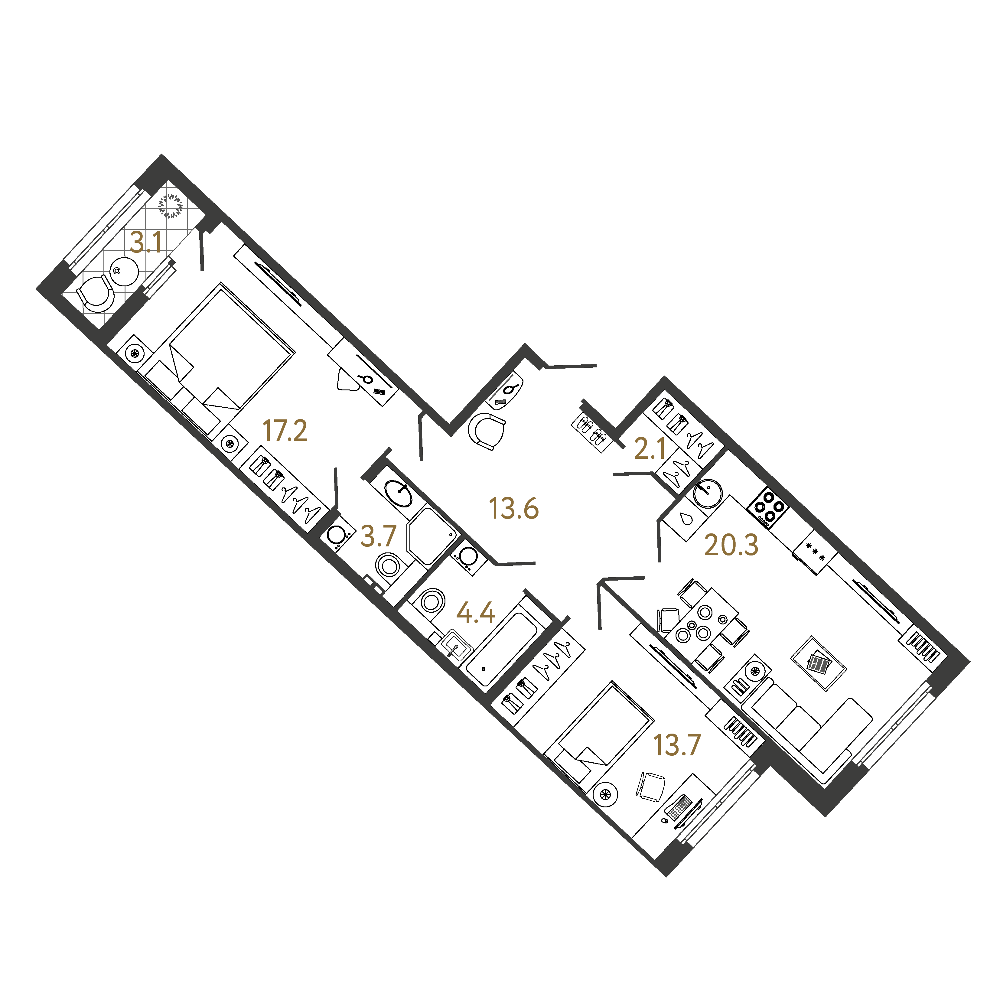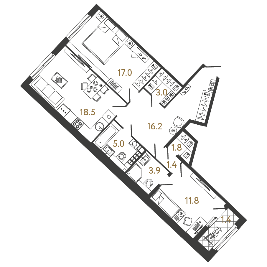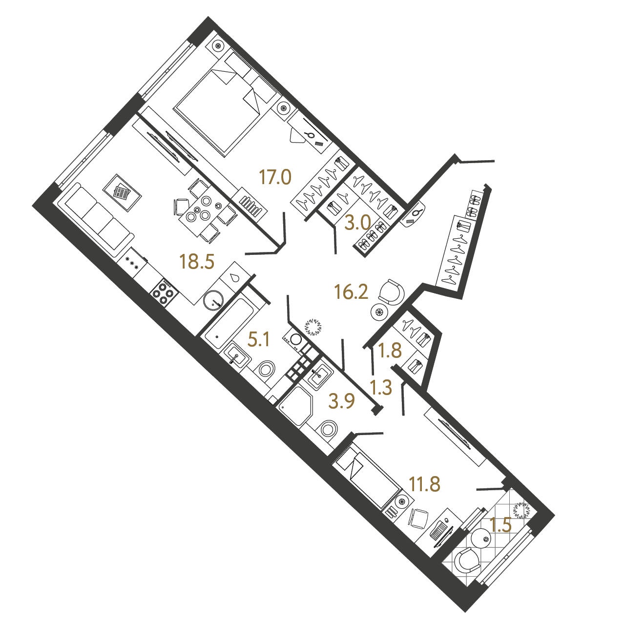 Двухкомнатные квартиры (18 квартир, 17 планировок)