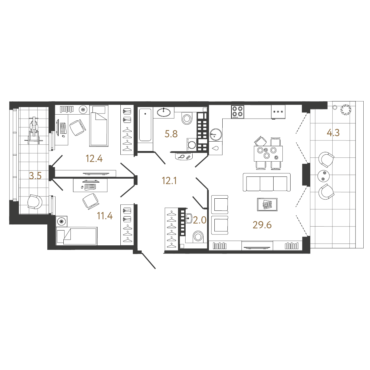 Трехкомнатные квартиры (10 квартир, 8 планировок)