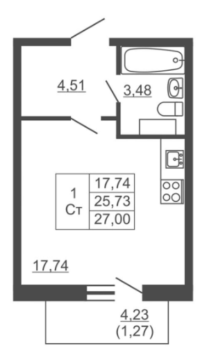 Студия (3 квартиры, 3 планировки)