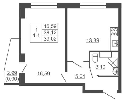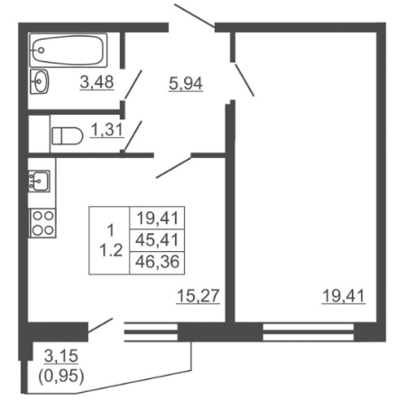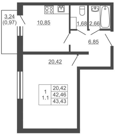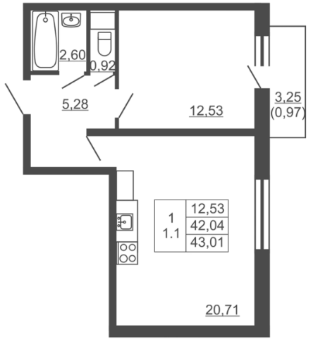Однокомнатные квартиры (6 квартир, 6 планировок)
