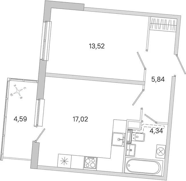 Двухкомнатные квартиры (4 квартиры, 4 планировки)