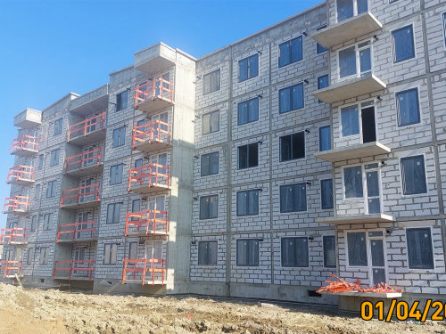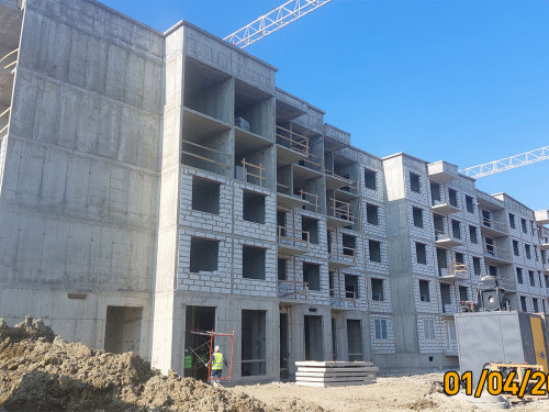 - Перекрытия над 1 этажом выполнены на секциях 1, 5, 8, 9; ведутся работы по устройству плиты перекрытия над секцией 2 с закладкой труб ПНД для разводки электроснабжения.