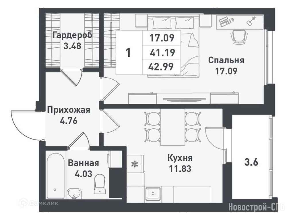Однокомнатные квартиры (3 квартиры, 3 планировки)