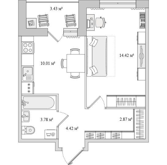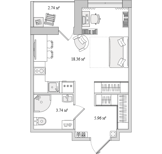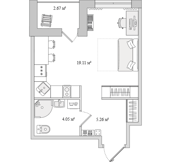 Студия (6 квартир, 6 планировок)