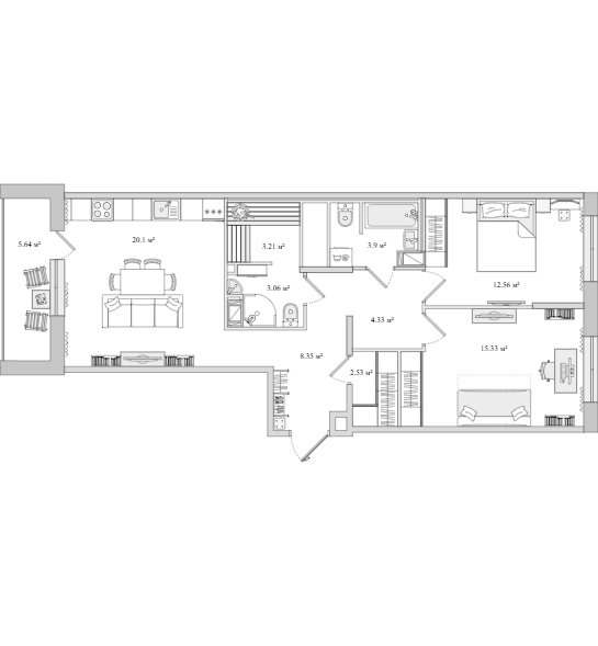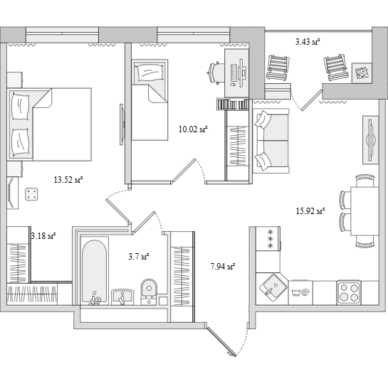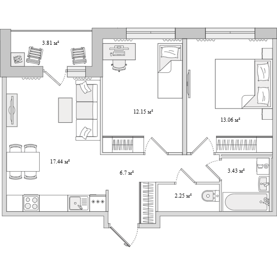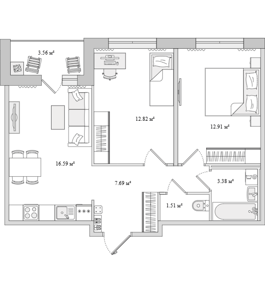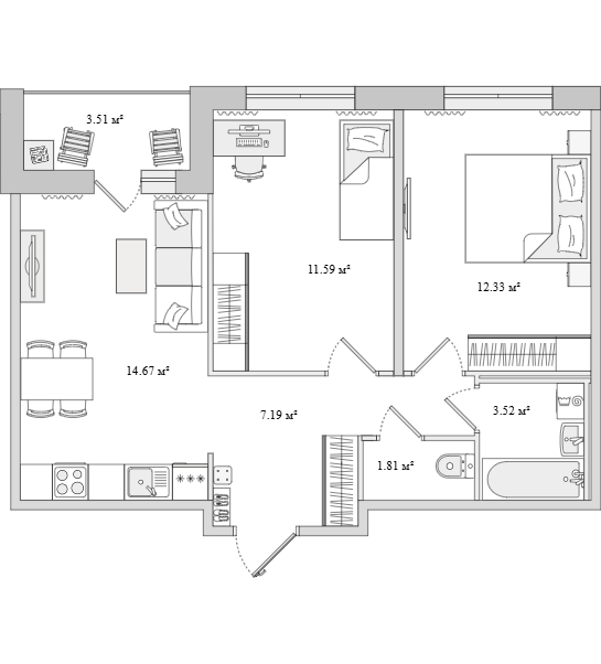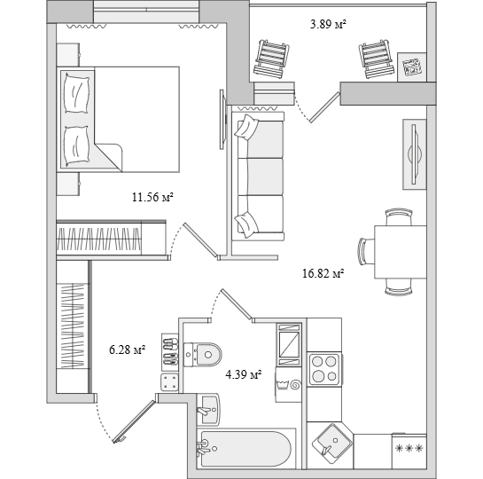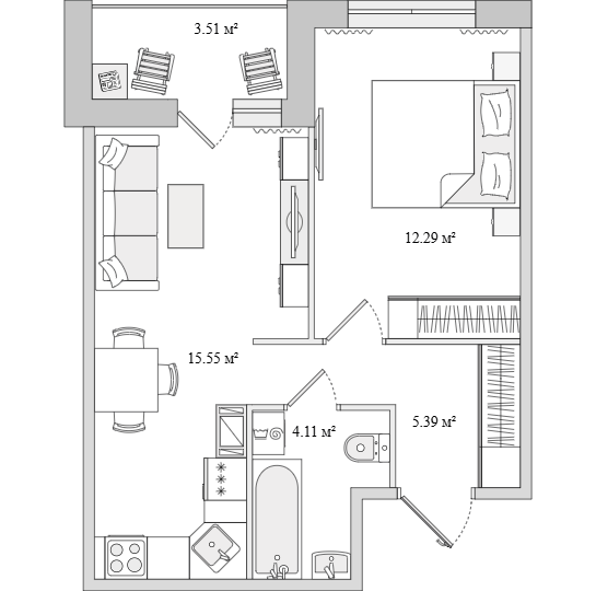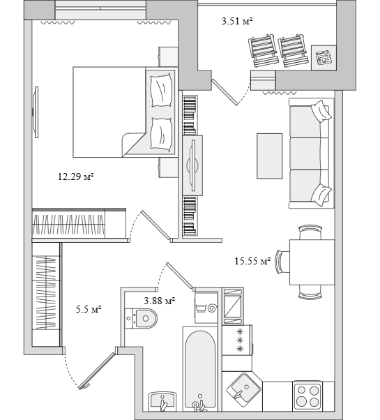 ЖК "Dreamline" — проект достаточно крупный. Из плюсов отметим наличие собственной инфраструктуры, двух парков, квартир с окнами на крыше и безбарьерной среды. Застройщик на сайте заявляет, что разработано около 20 типов планировок. При этом, если открыть библиотеку с предложениями, видно — площадь большинства не превышает 50 кв. м.