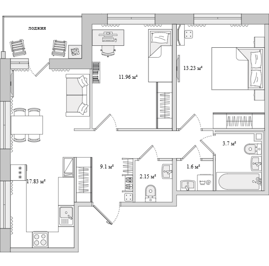 Двухкомнатные квартиры (18 квартир, 18 планировок)