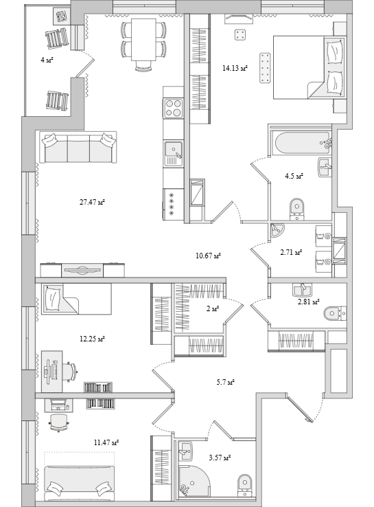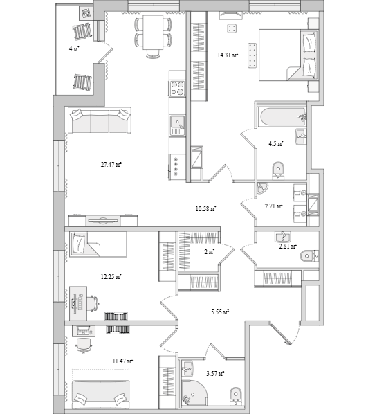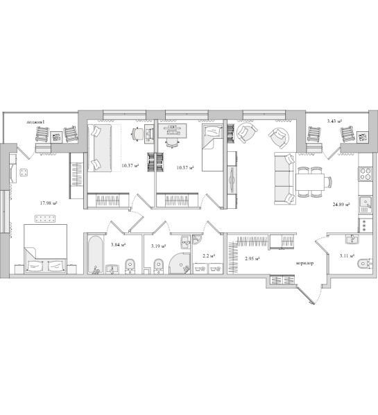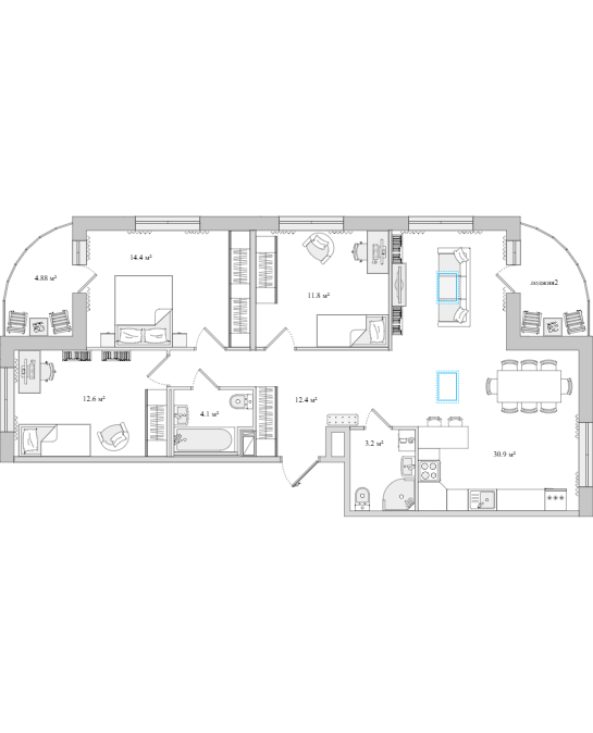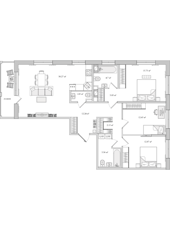 Четырехкомнатные квартиры (1 квартира, 1 планировка)