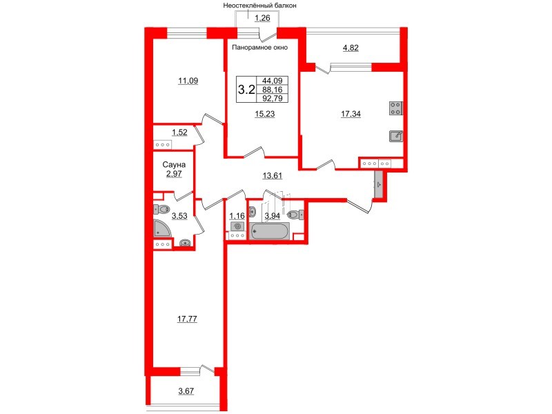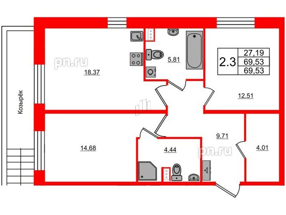 Трехкомнатные квартиры (2 квартиры, 2 планировки)