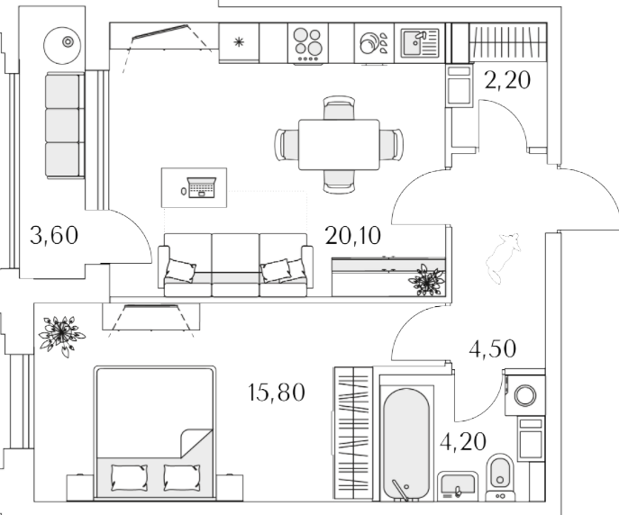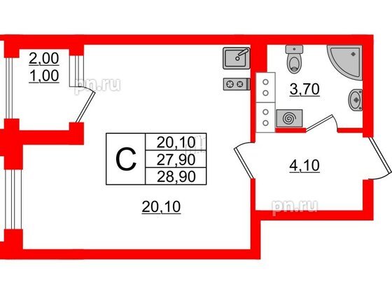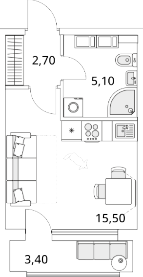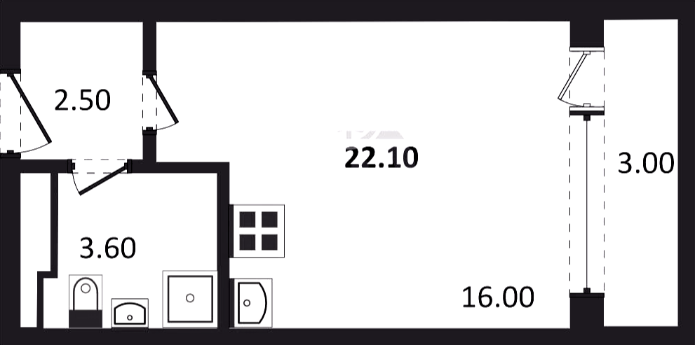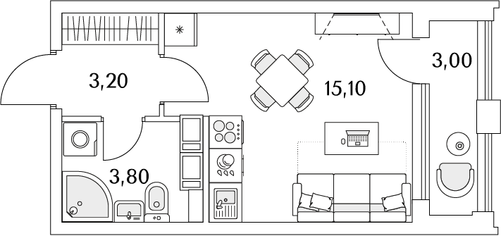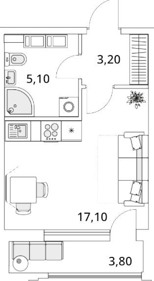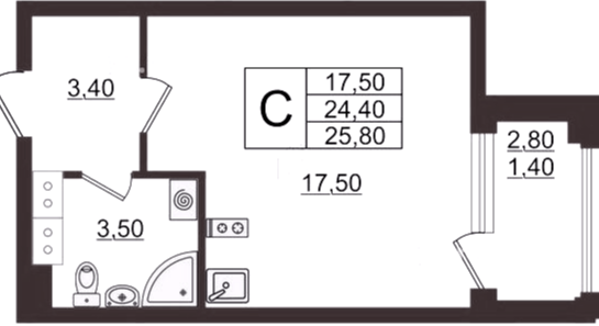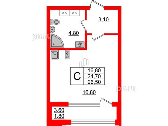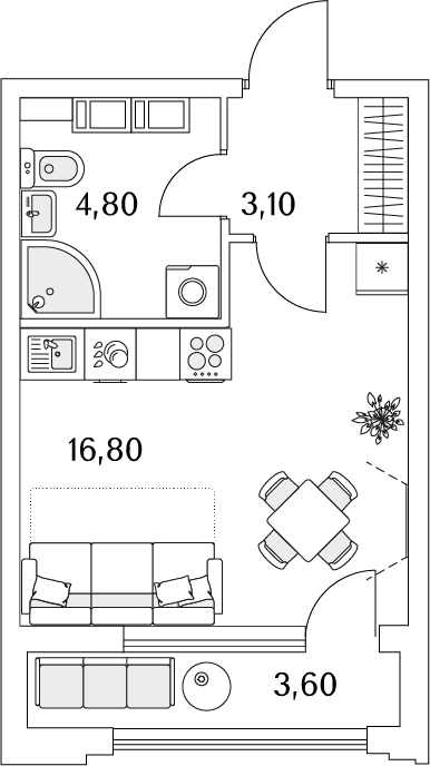 Студия (78 квартир, 48 планировок)