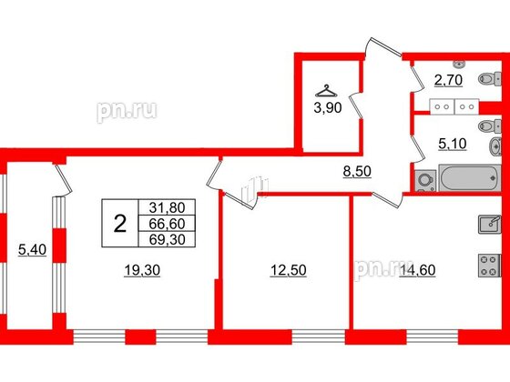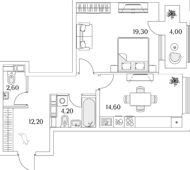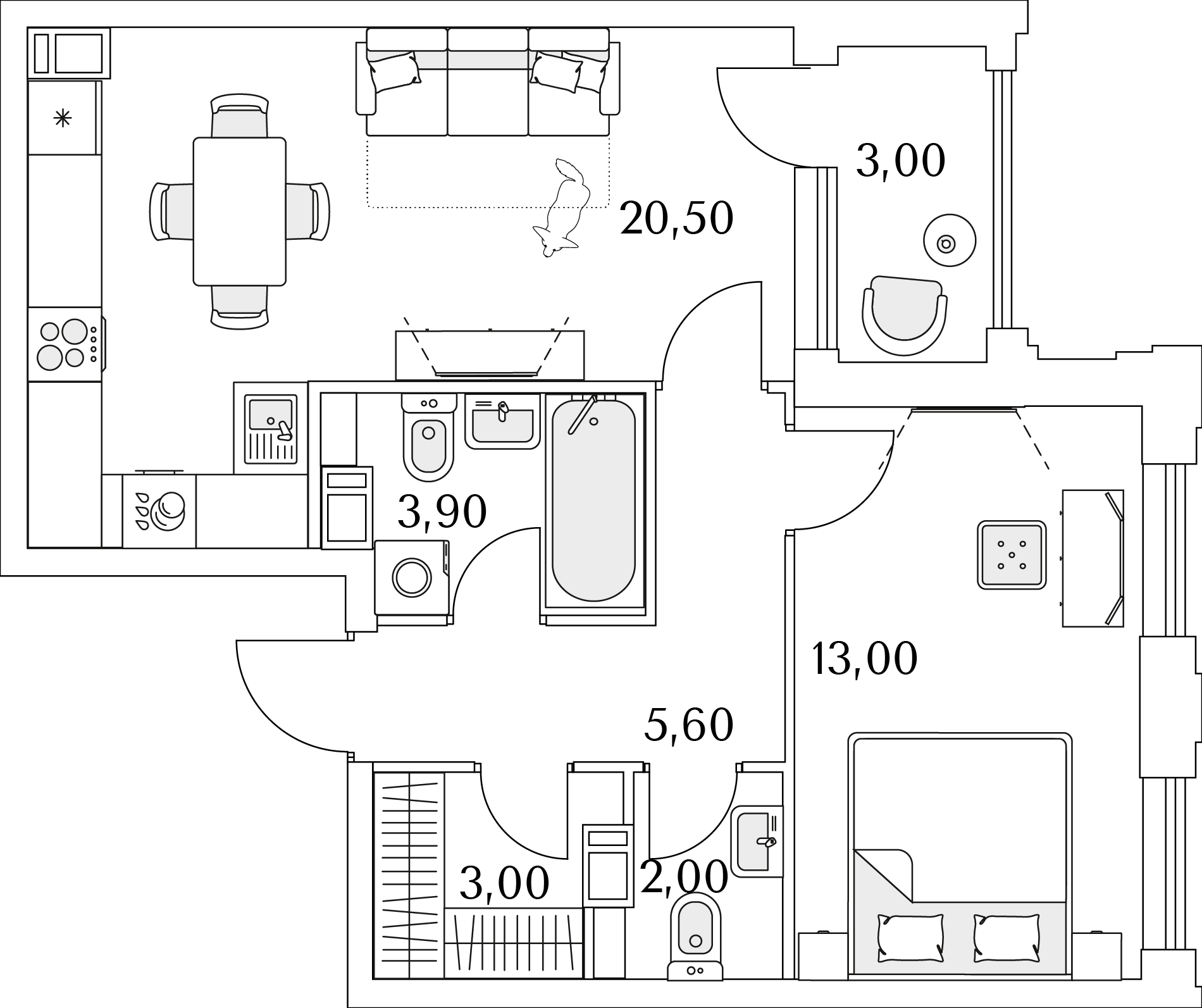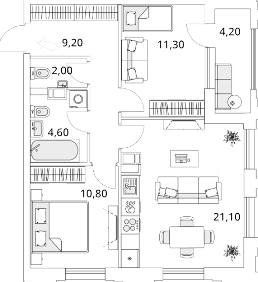 Двухкомнатные квартиры (46 квартир, 32 планировки)
