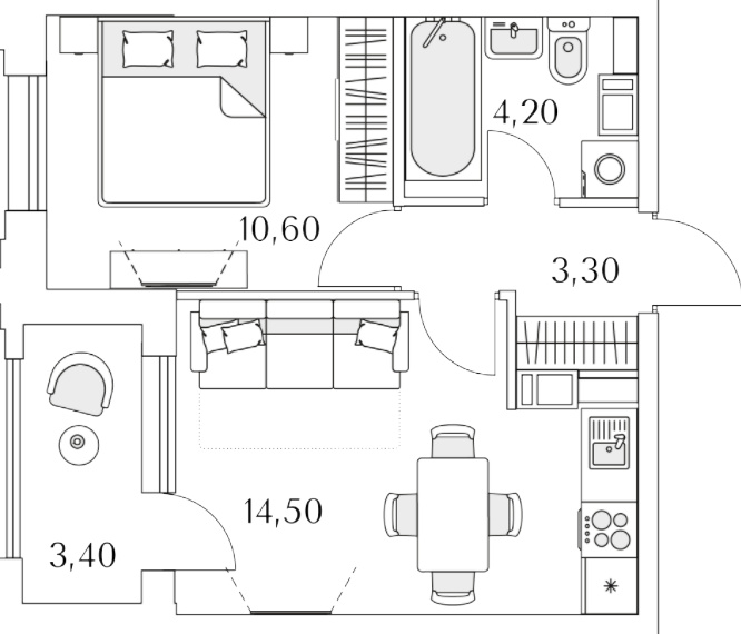 Однокомнатные квартиры (37 квартир, 34 планировки)