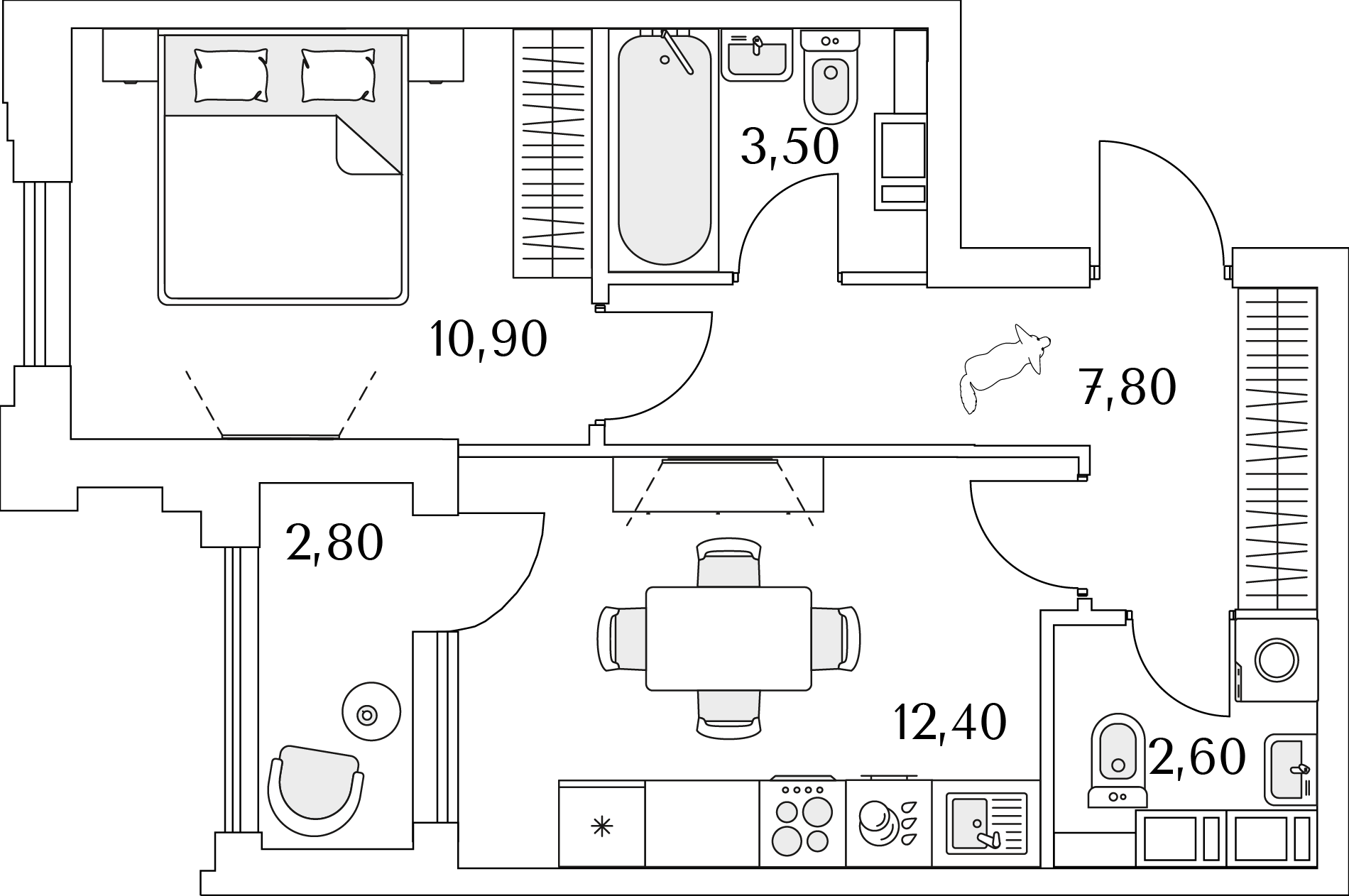 Однокомнатные квартиры (56 квартир, 46 планировок)