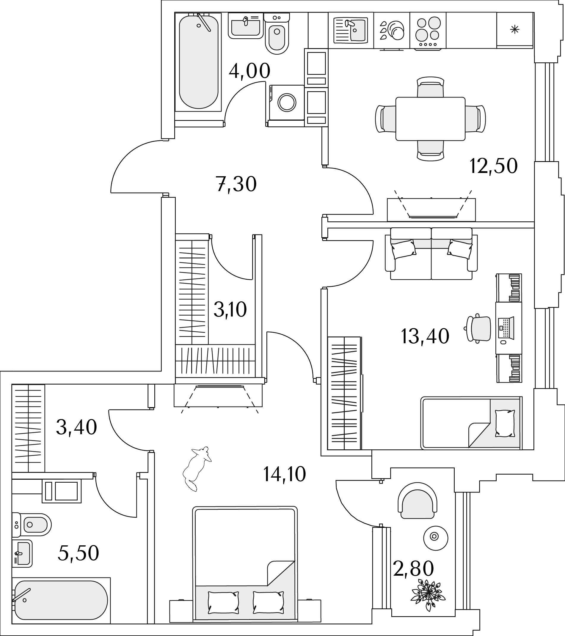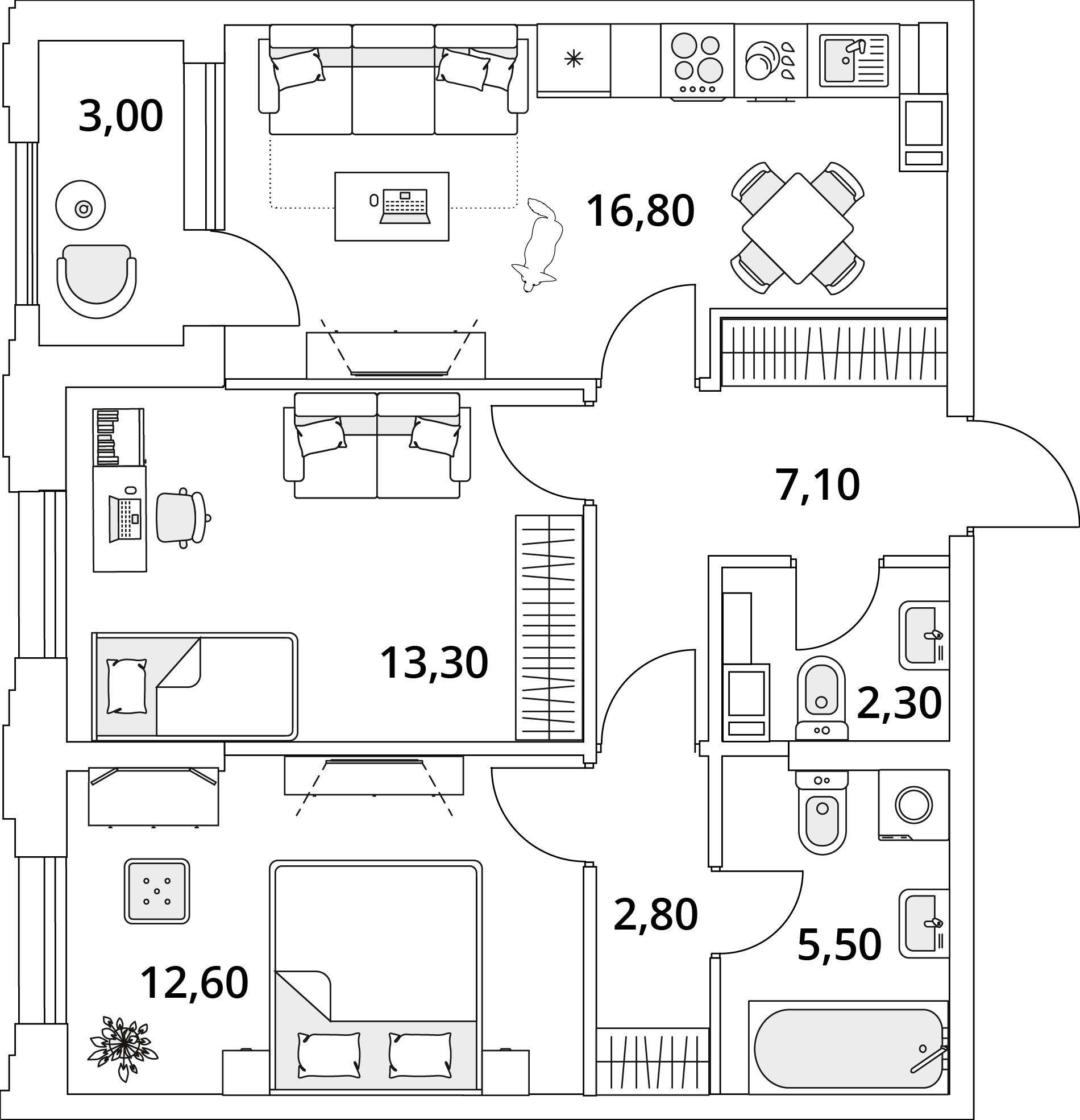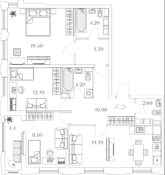Трехкомнатные квартиры (4 квартиры, 4 планировки)