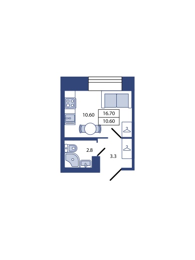 В доме 32 номера. Все планировки — студии площадью от 14 до 32 кв. м. Высота потолков 3,5 метра. Толщина наружных стен 110 см, что позволит установить широкие подоконники.