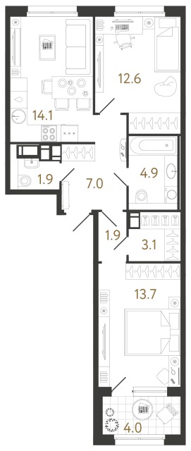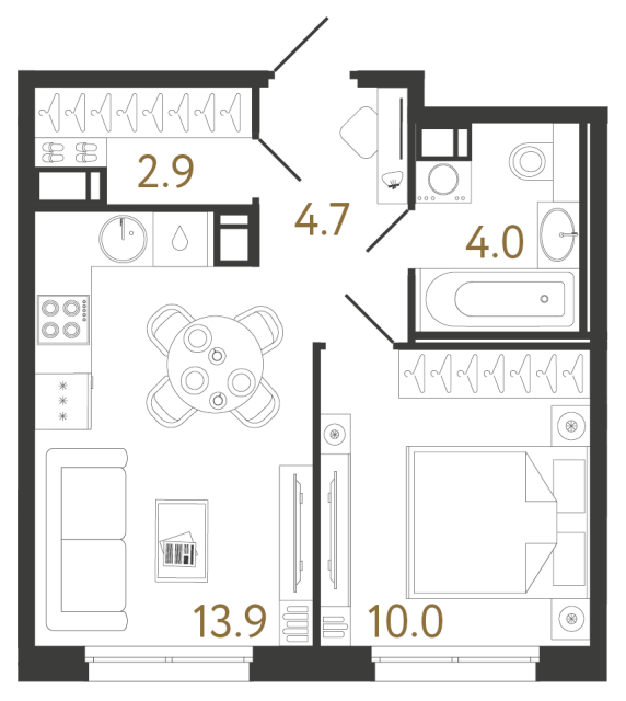 Однокомнатные квартиры (9 квартир, 7 планировок)