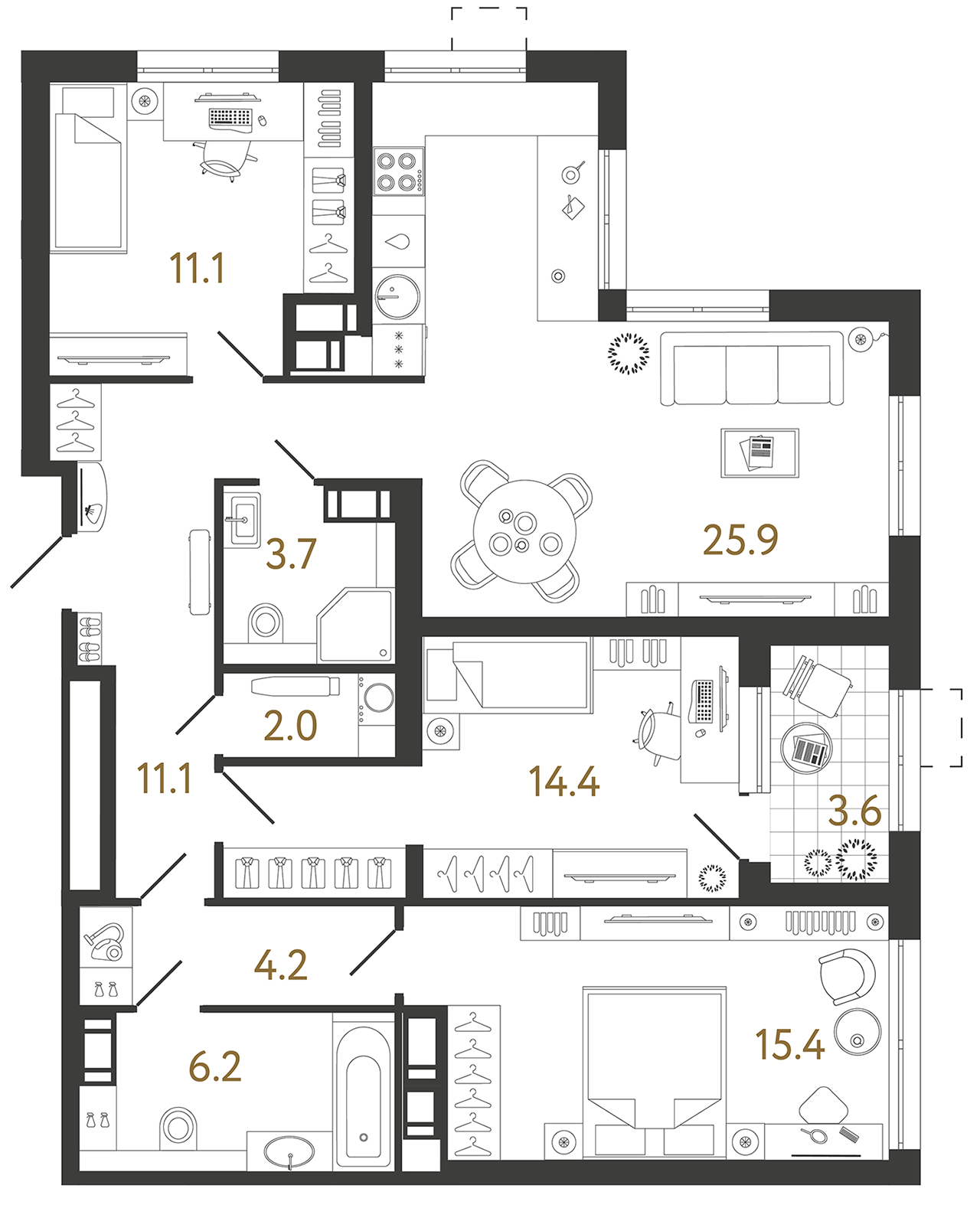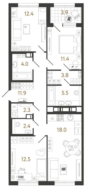 Трехкомнатные квартиры (13 квартир, 10 планировок)