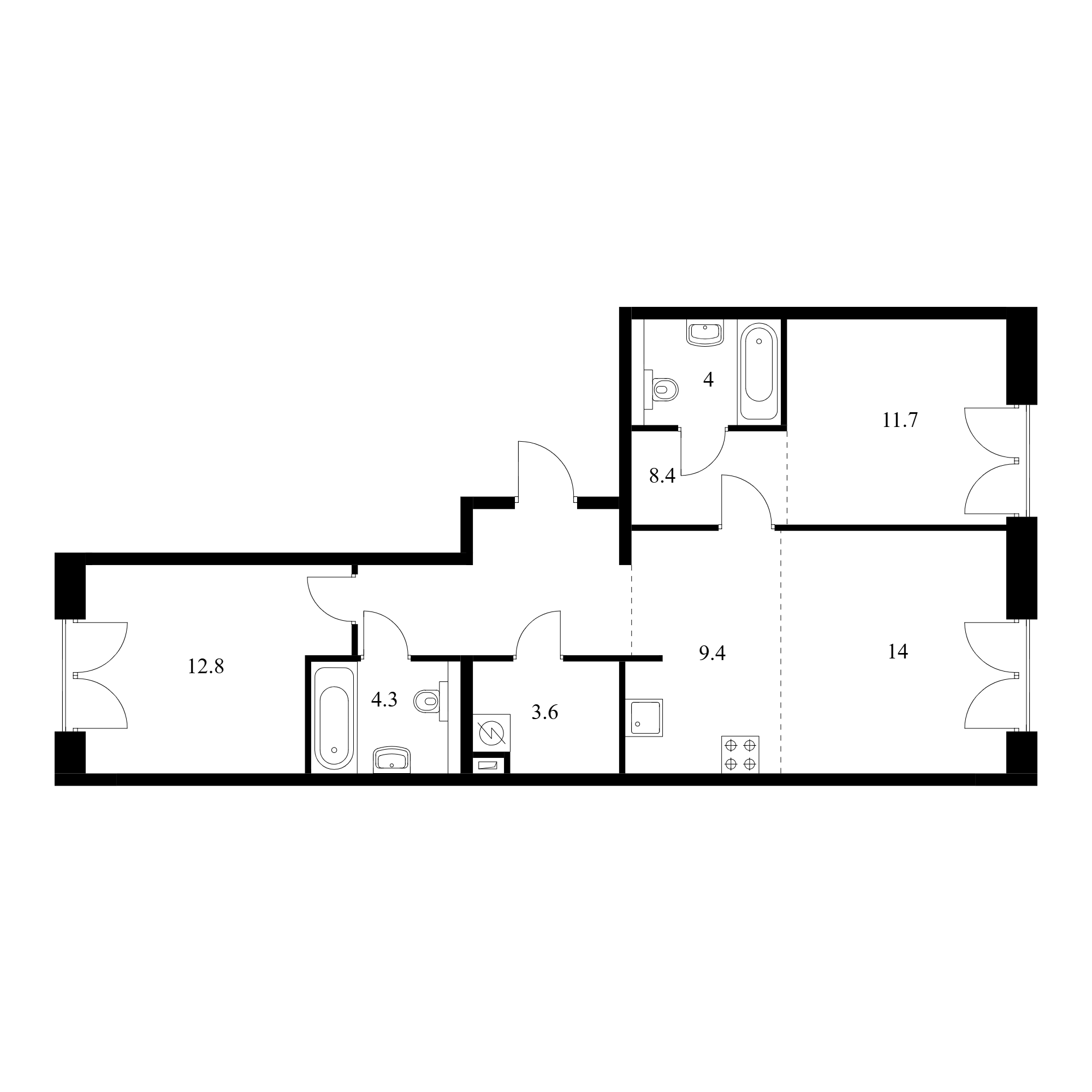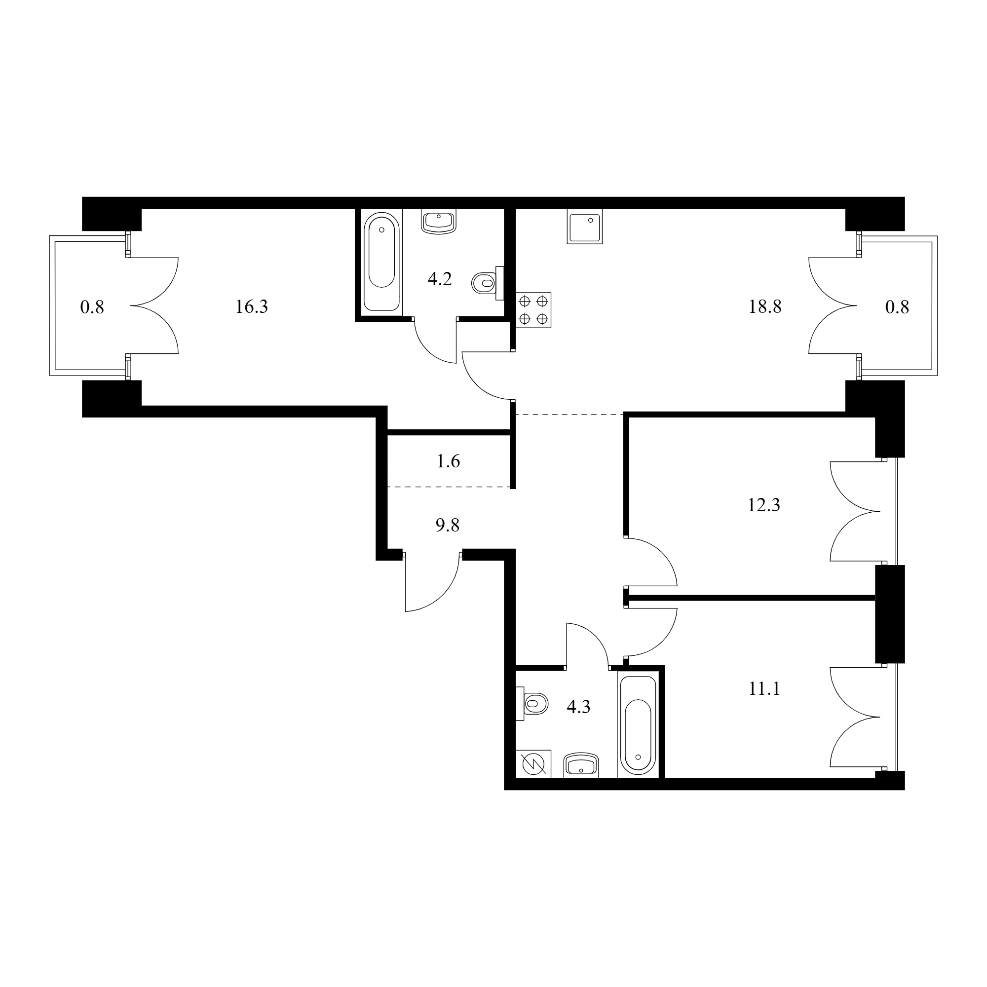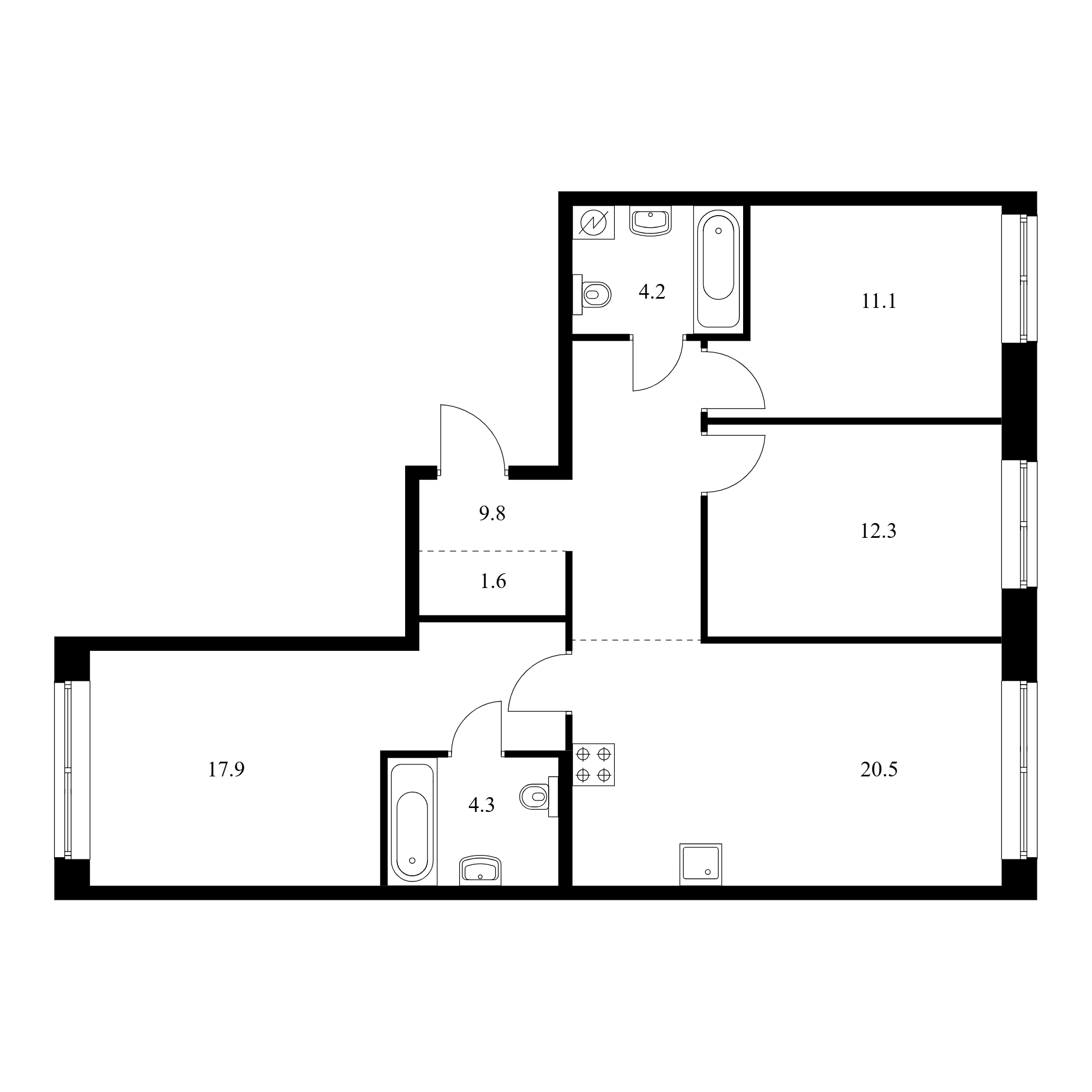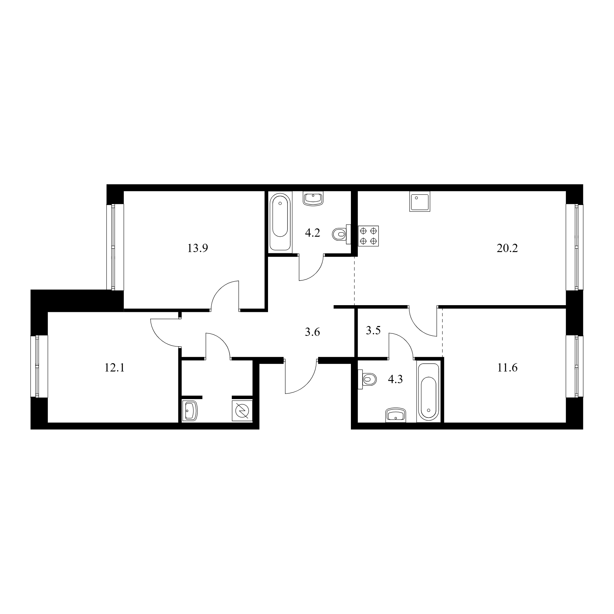 Четырехкомнатные квартиры (2 квартиры, 2 планировки)