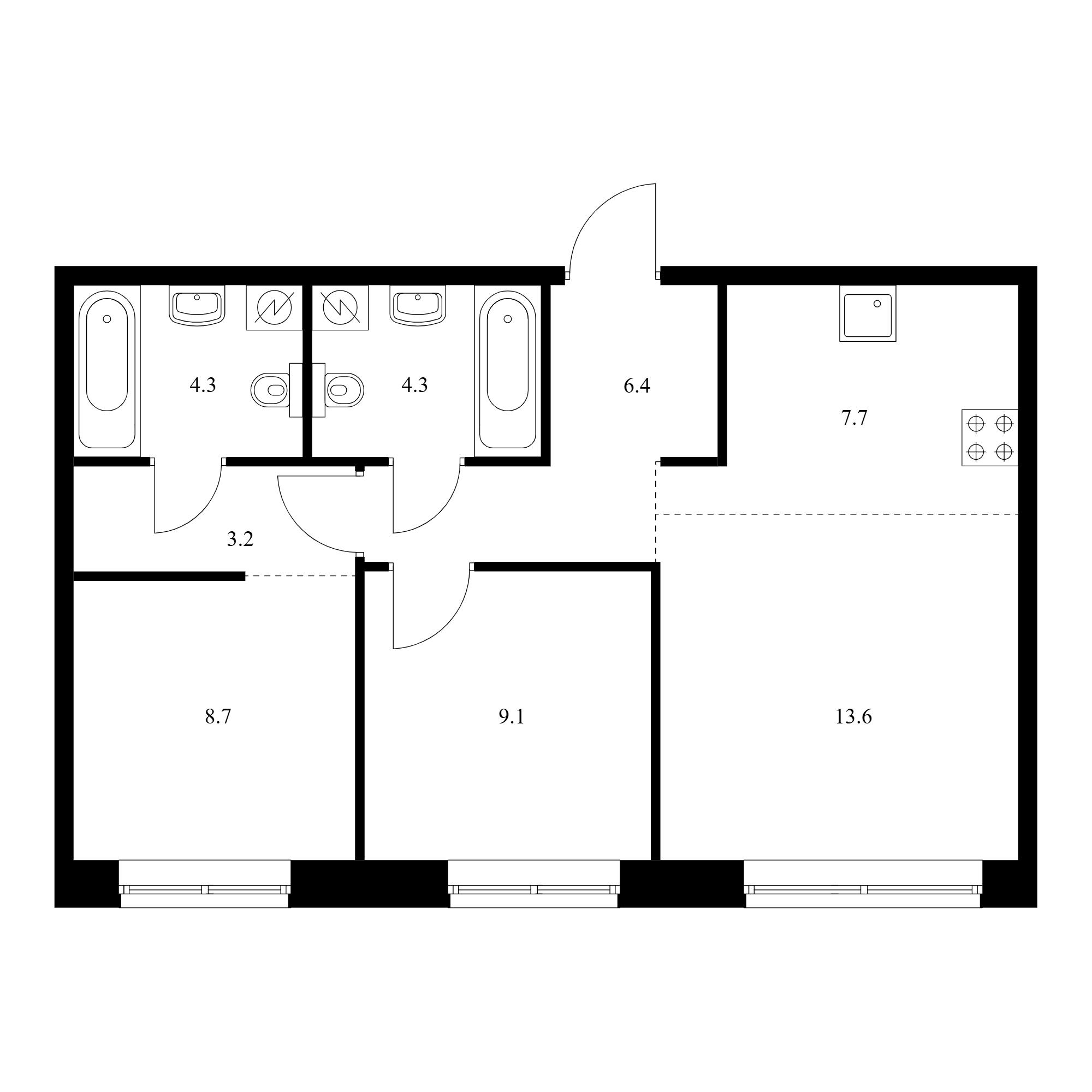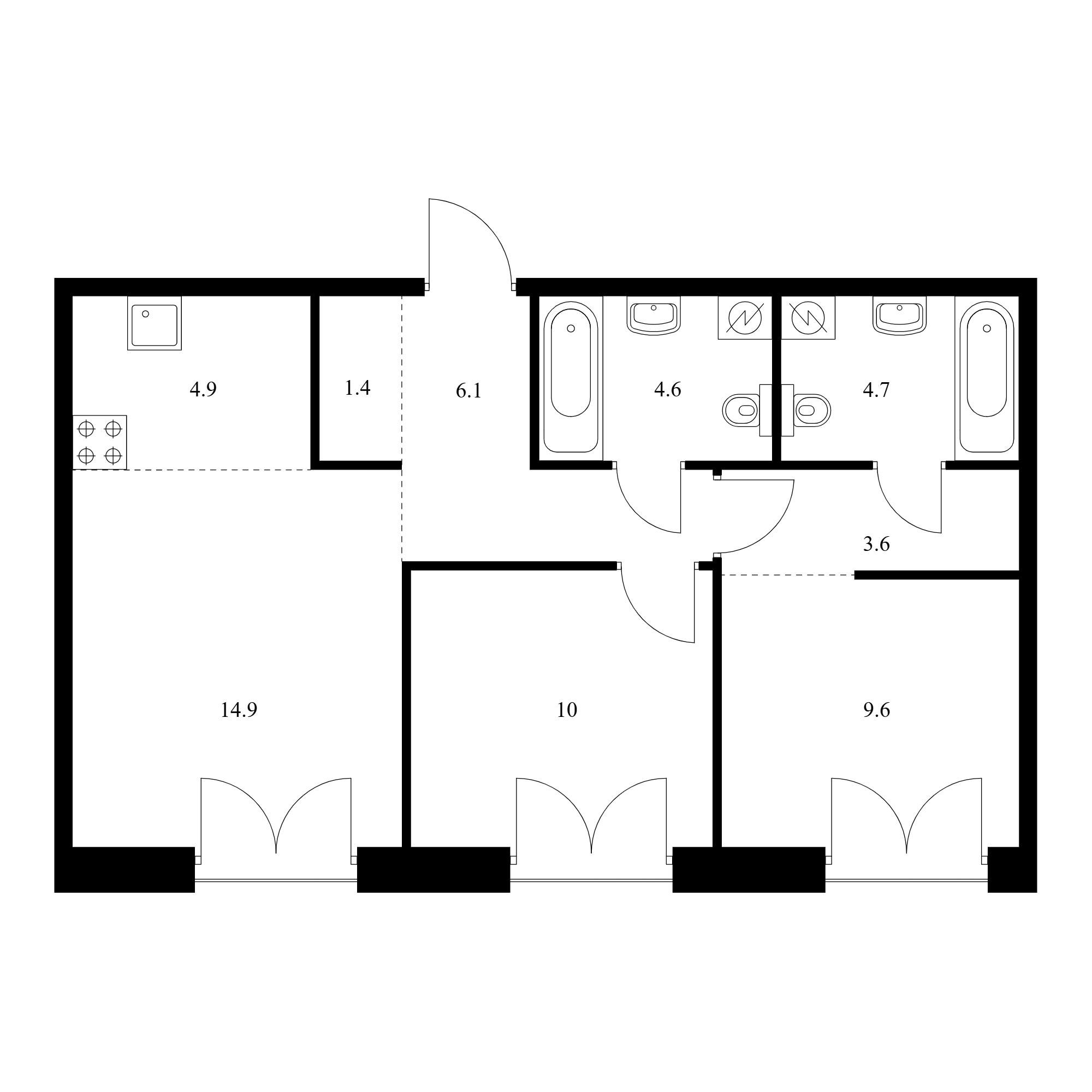 Трехкомнатные квартиры (9 квартир, 9 планировок)