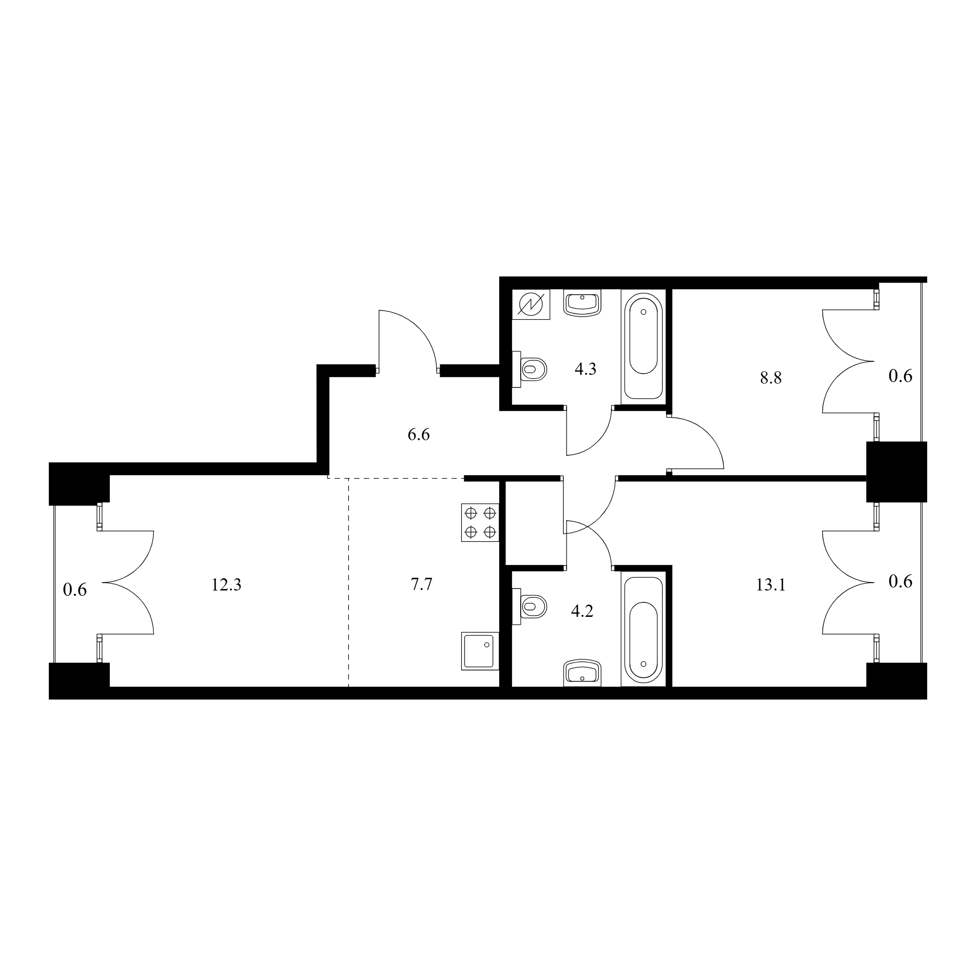 Двухкомнатные квартиры (9 квартир, 9 планировок)