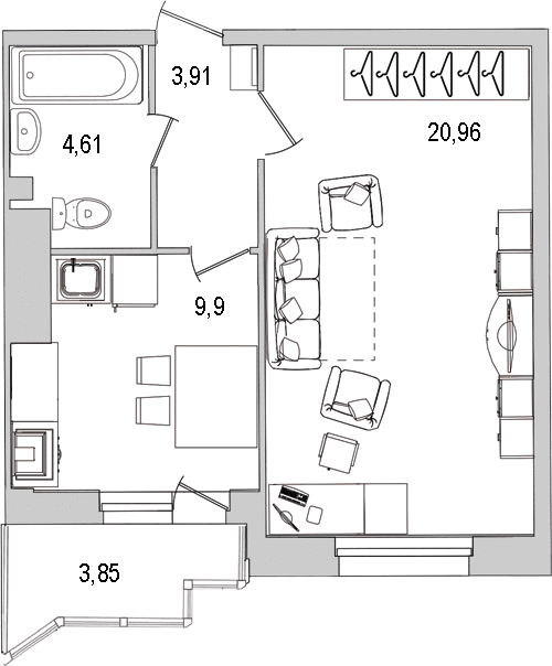 Однокомнатные квартиры (2 квартиры, 2 планировки)