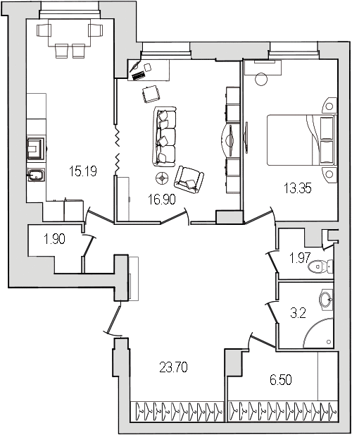 В новостройке предложены квартиры от студий до 4-комнатных. Есть варианты с террасами и двухуровневые планировки. Высота потолков составляет 2,7 метра. Установят системы пожаротушения, дымоудаления и приточно-вытяжной вентиляции. В холлах будут дежурить охранники. В секциях установят по три лифта — два грузовых и один пассажирский.
