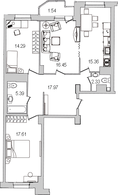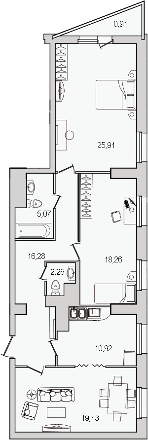 Трехкомнатные квартиры (2 квартиры, 2 планировки)