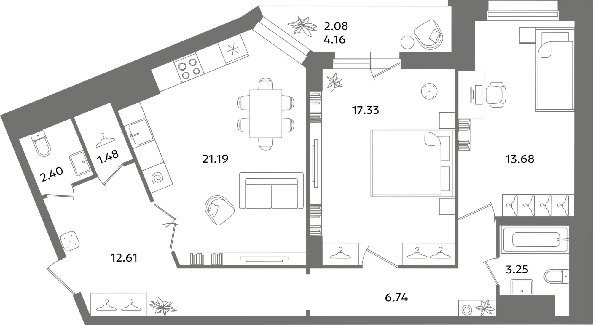 Двухкомнатные квартиры (4 квартиры, 4 планировки)