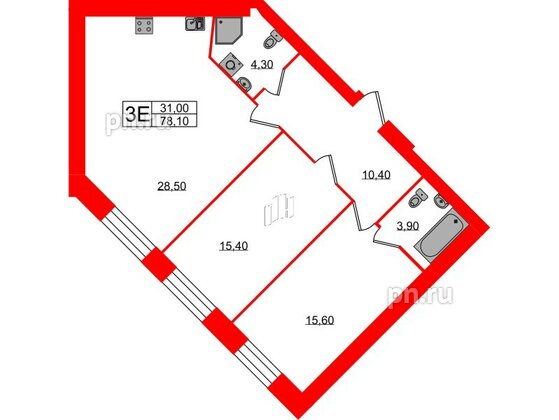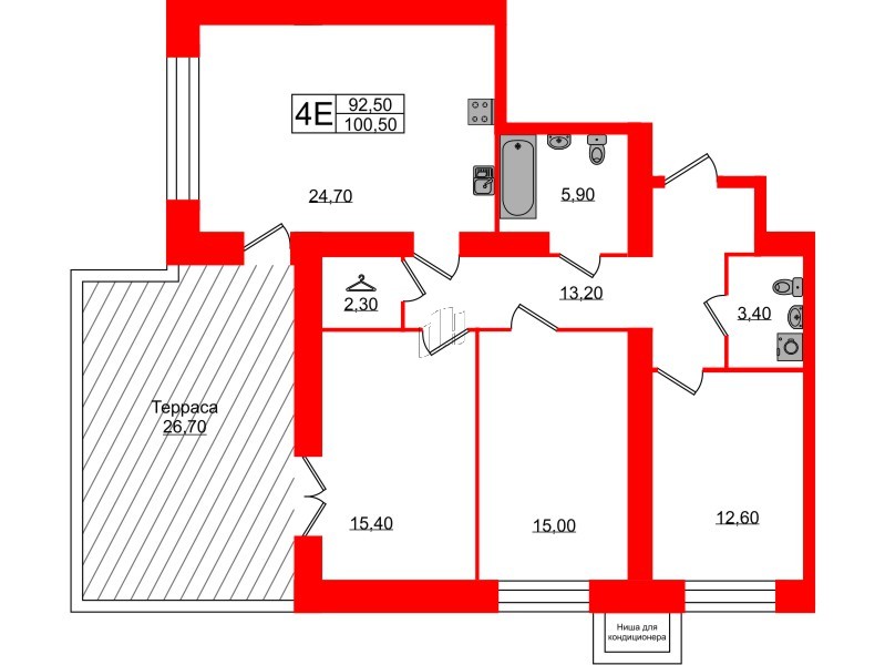 Четырехкомнатные квартиры (1 квартира, 1 планировка)