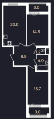 | 58.4 м2 | 15.43 | 20.94 | 20 этаж | 4 кв 2025 | 373 500 a/м2 | 21 812 401 руб |