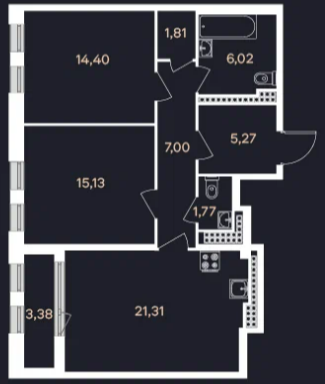 Двухкомнатные квартиры (3 квартиры, 3 планировки)