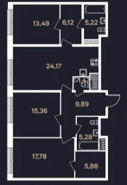 | 179.5 м2 | 87.6 | 47.2 | 17 этаж | 4 кв 2025 | 290 000 a/м2 | 52 055 000 руб |