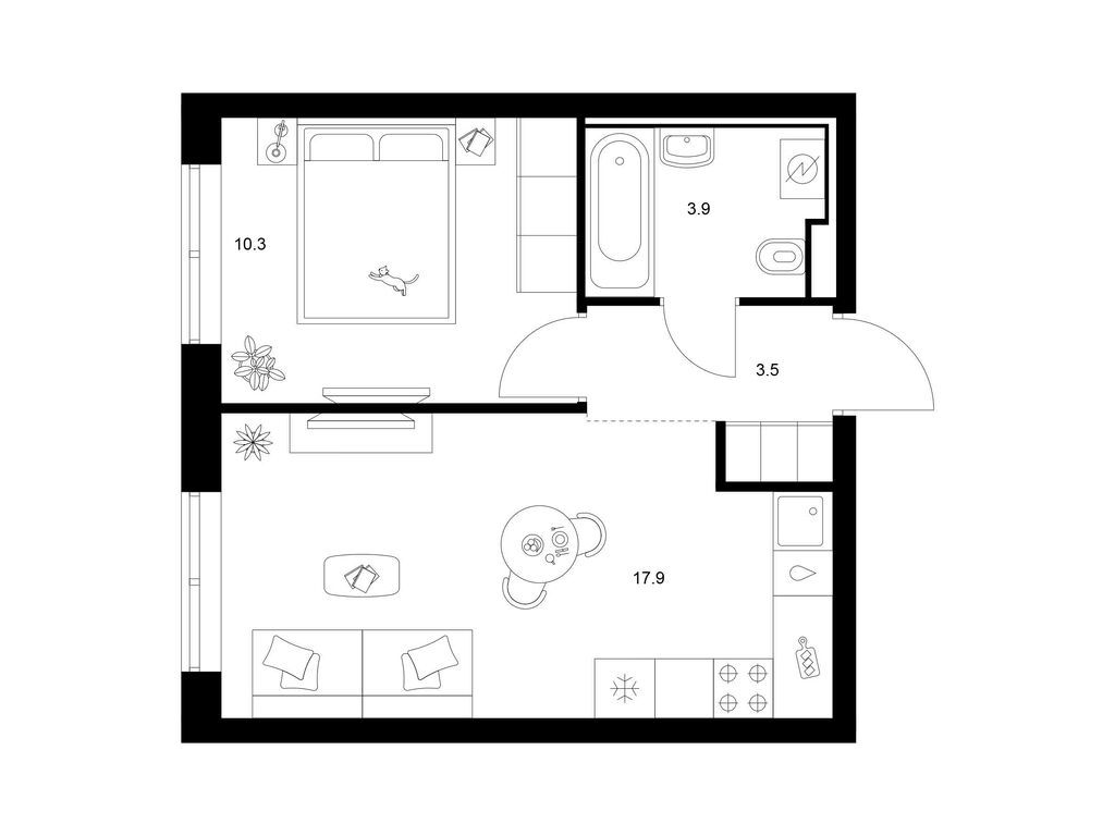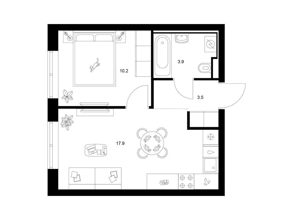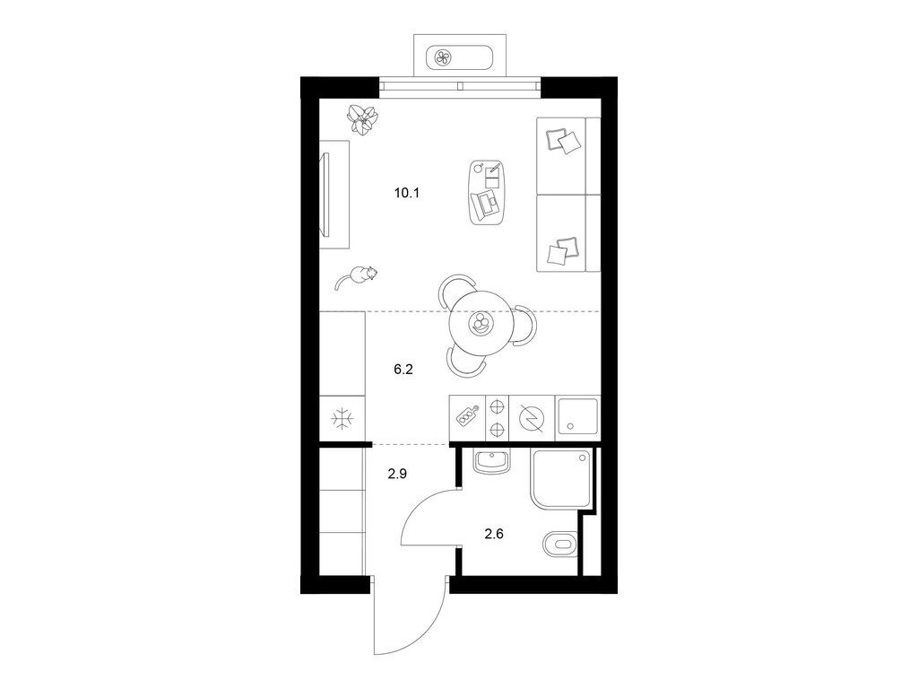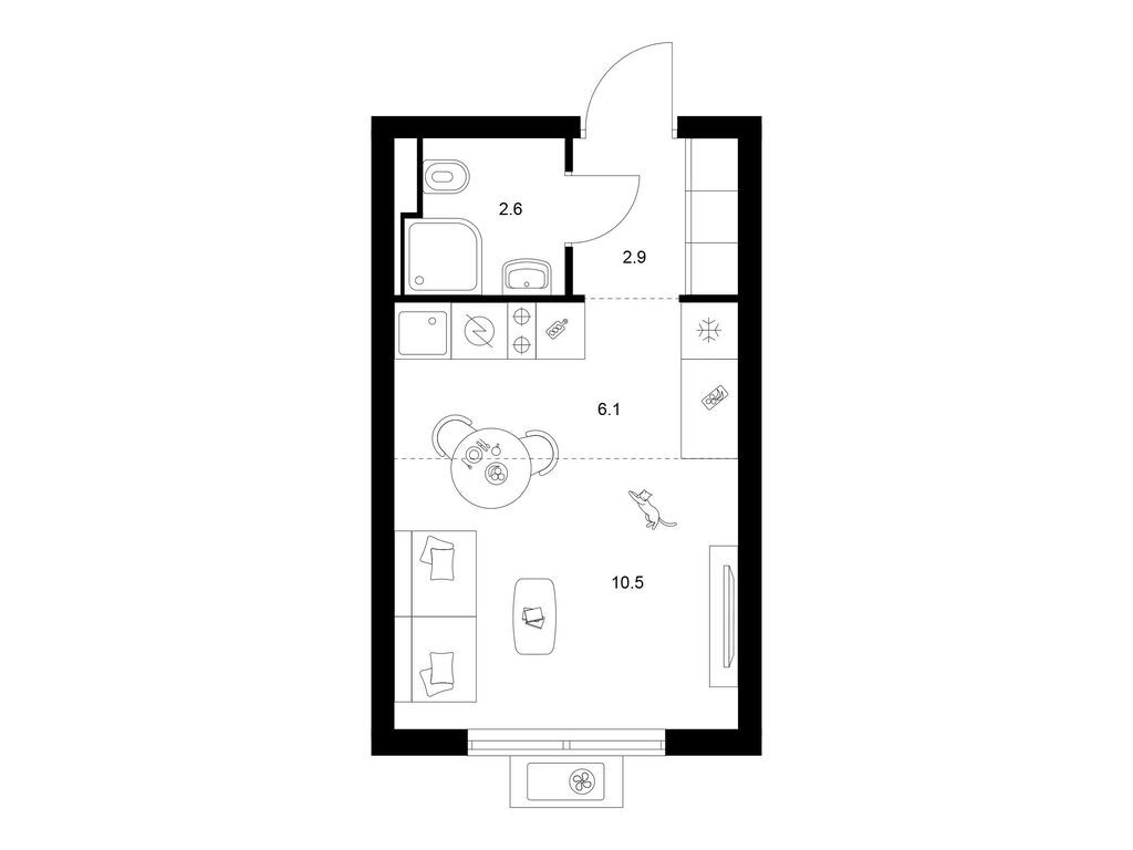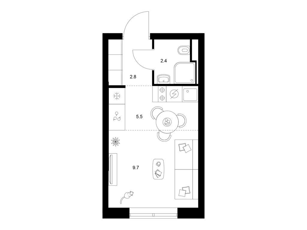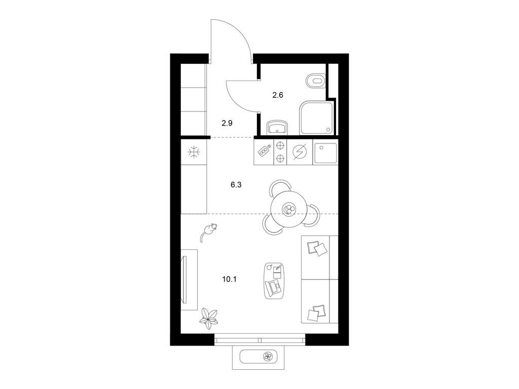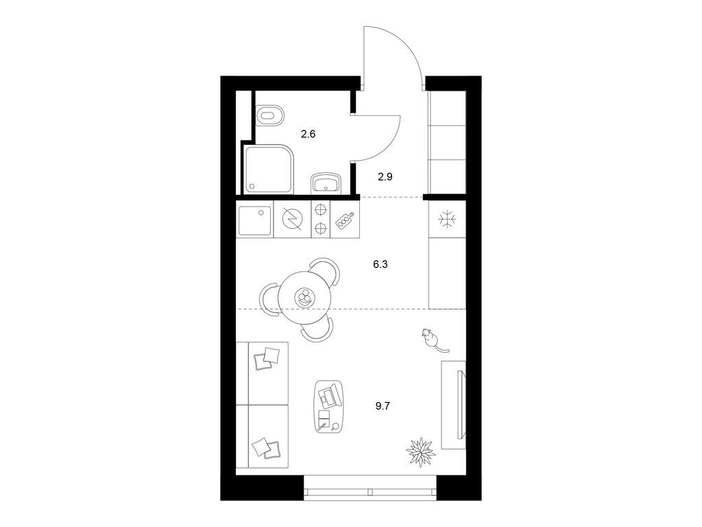 Студия (77 квартир, 21 планировка)