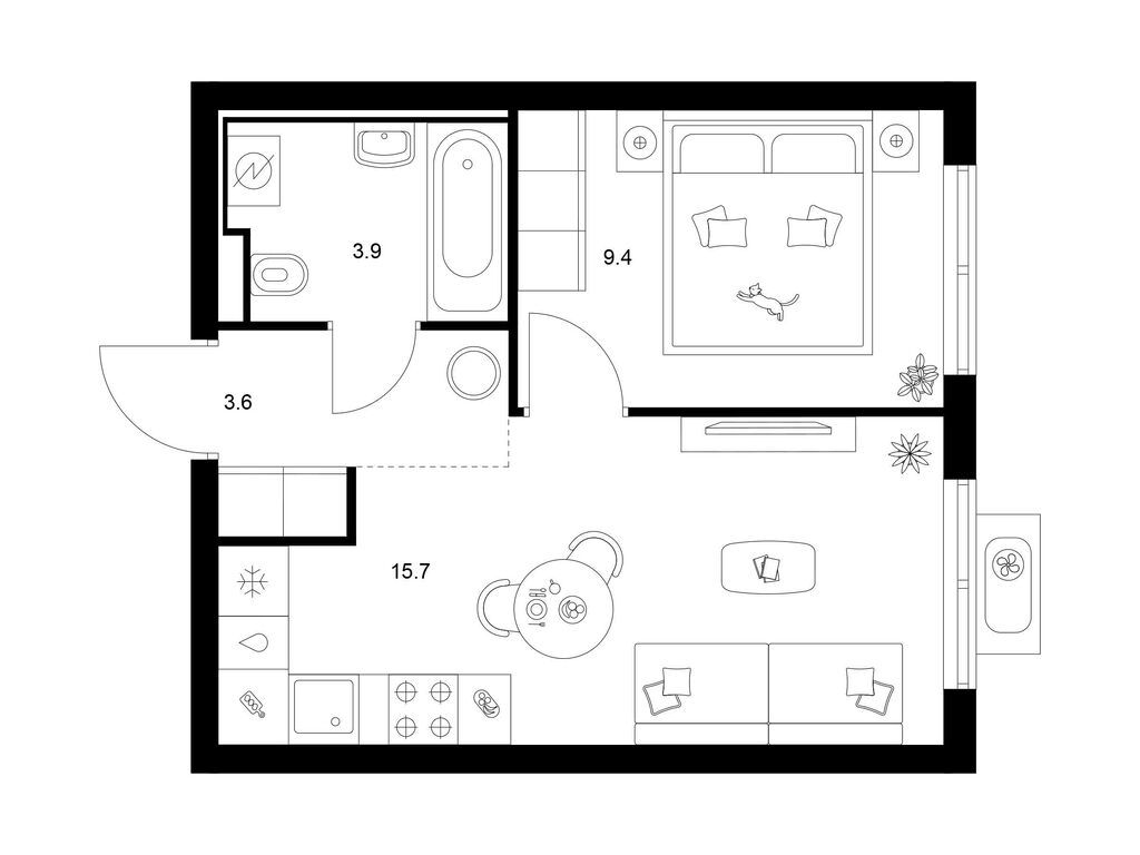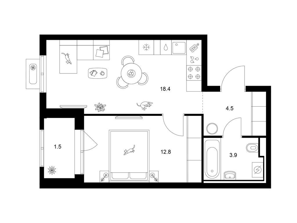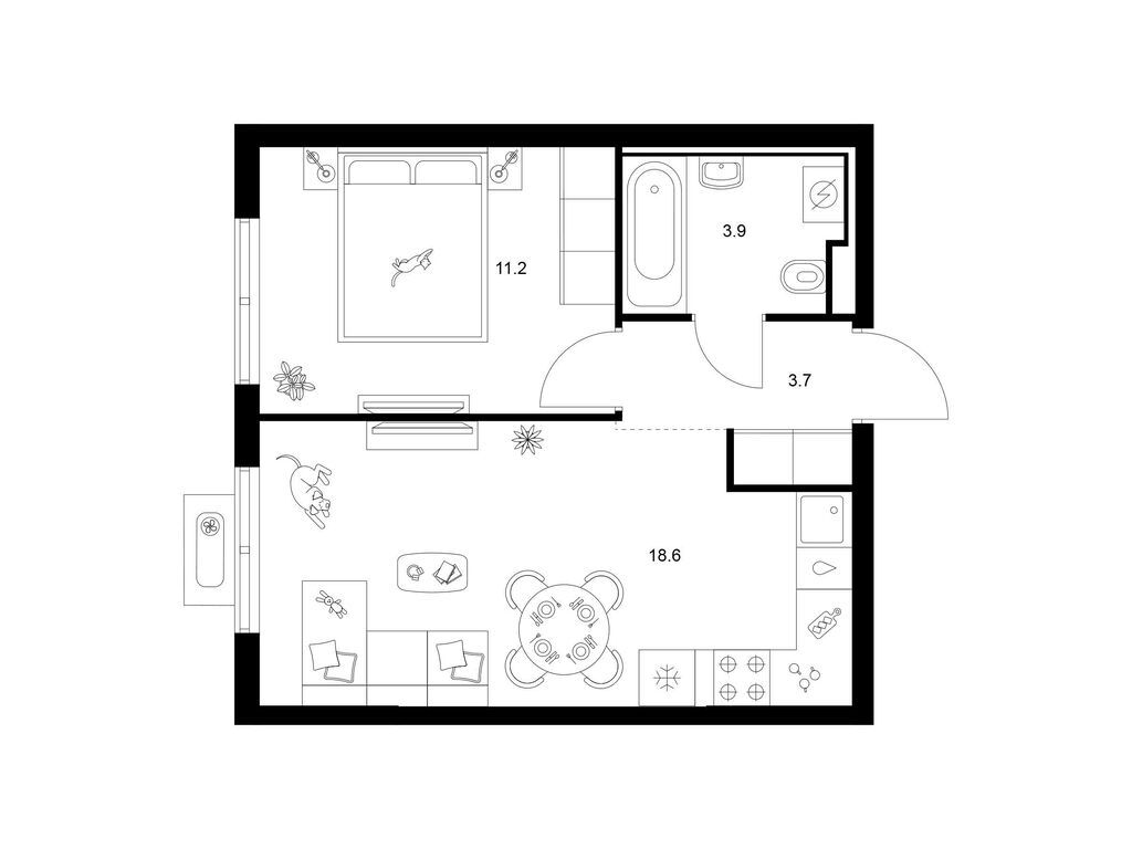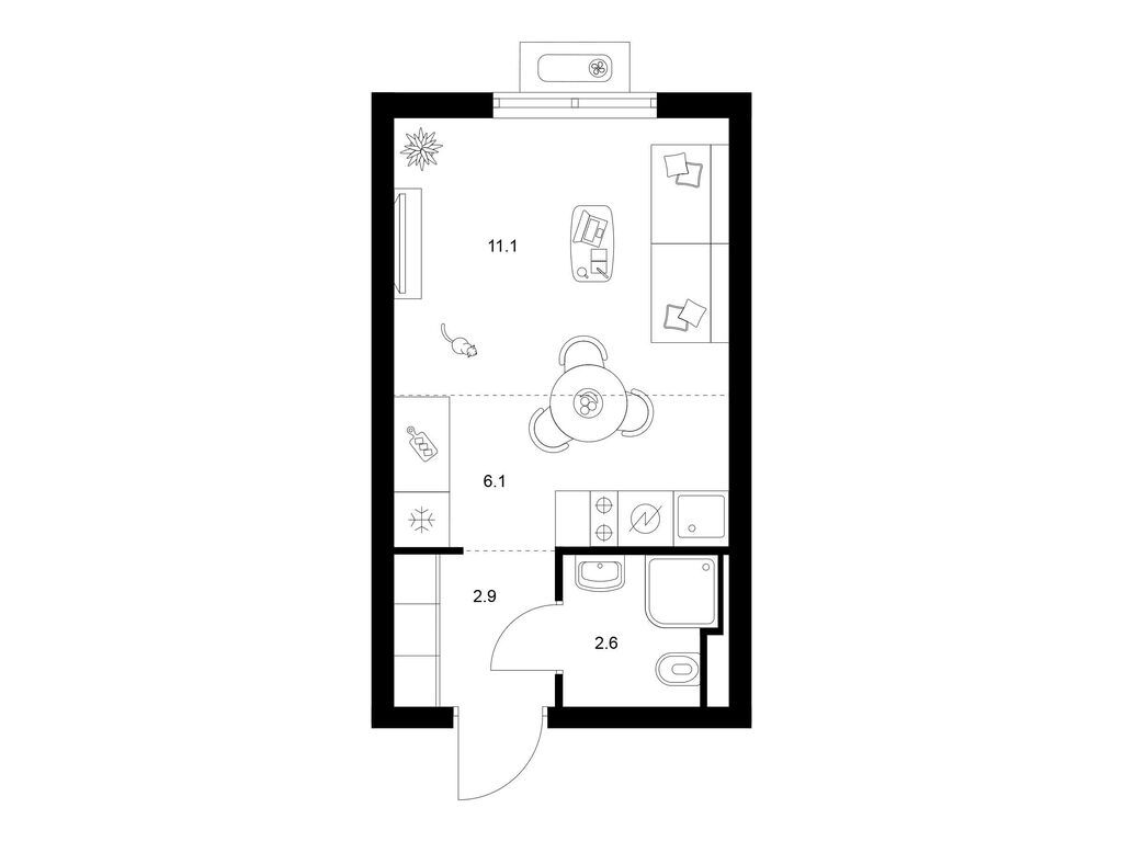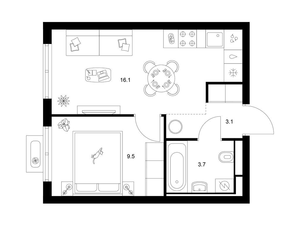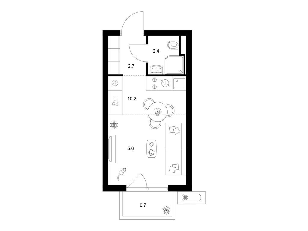 Студия (77 квартир, 21 планировка)