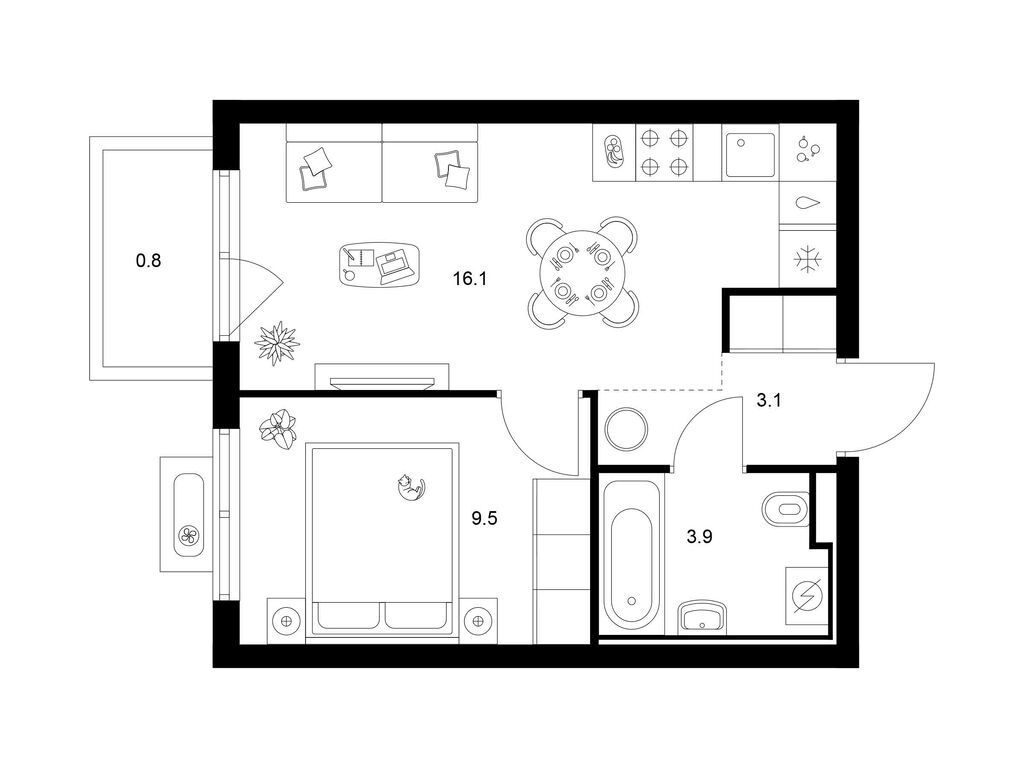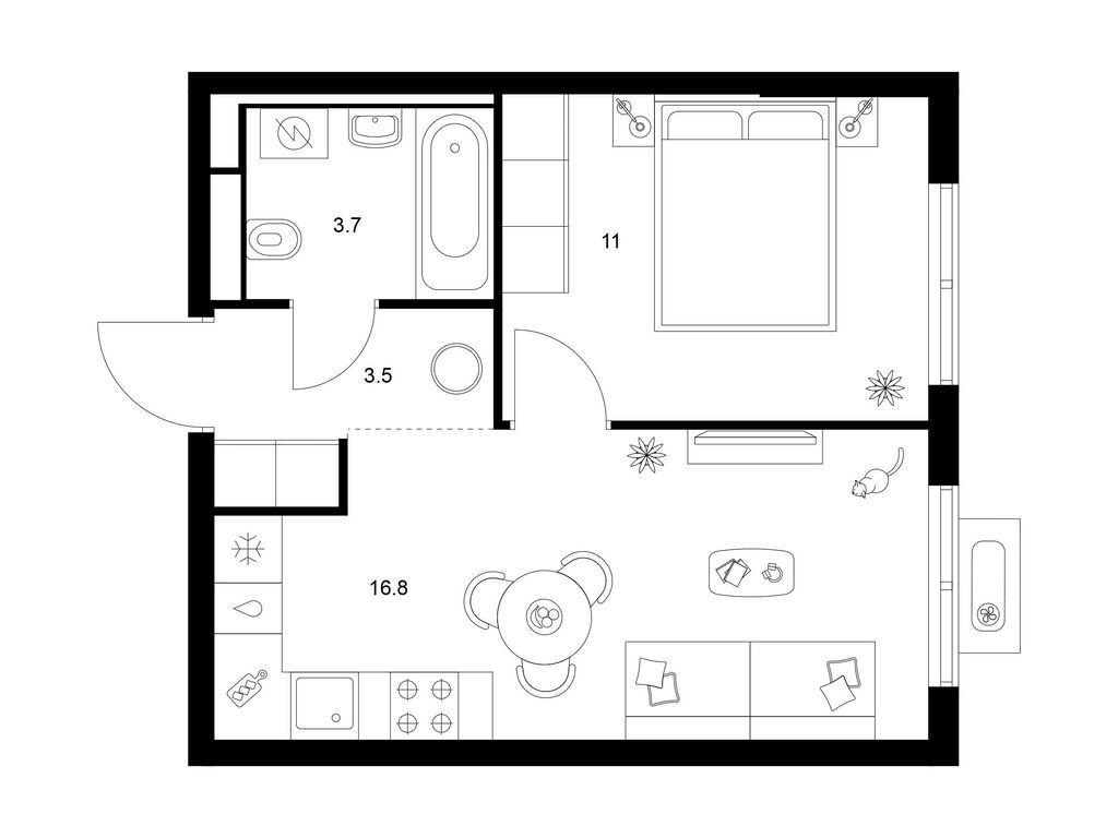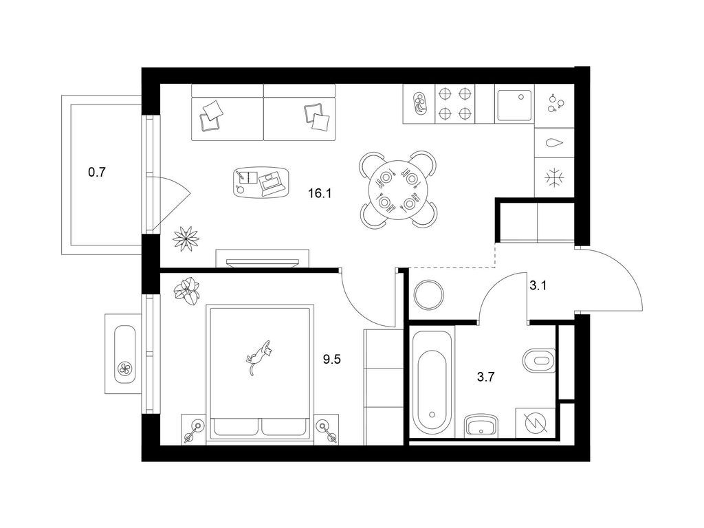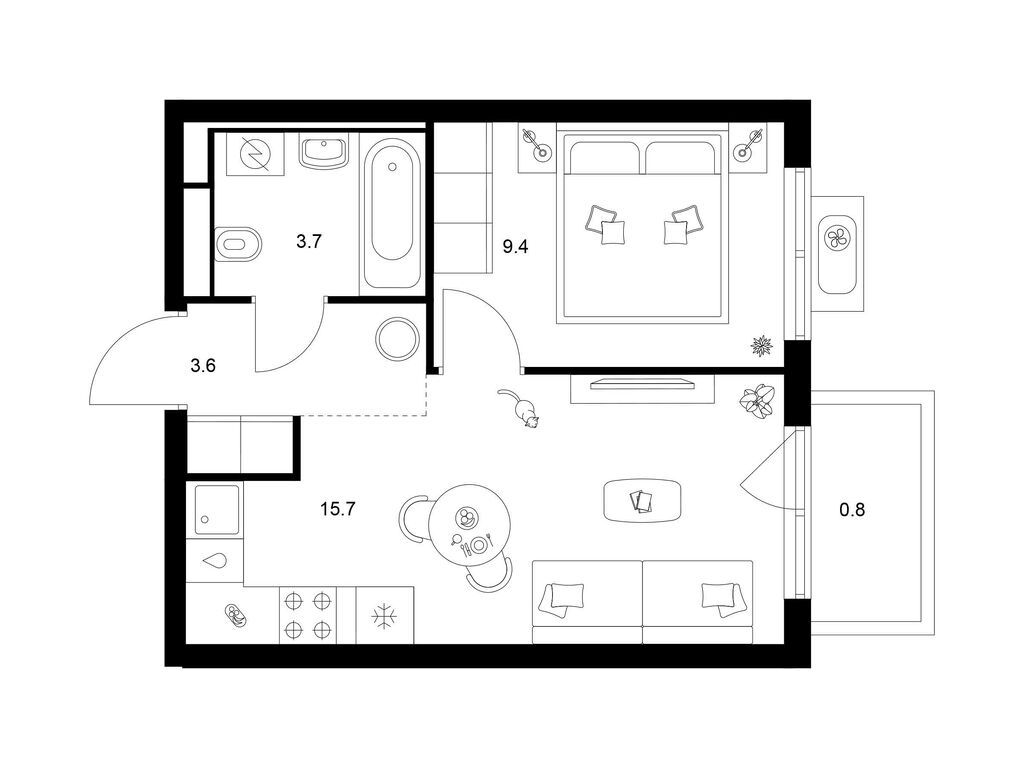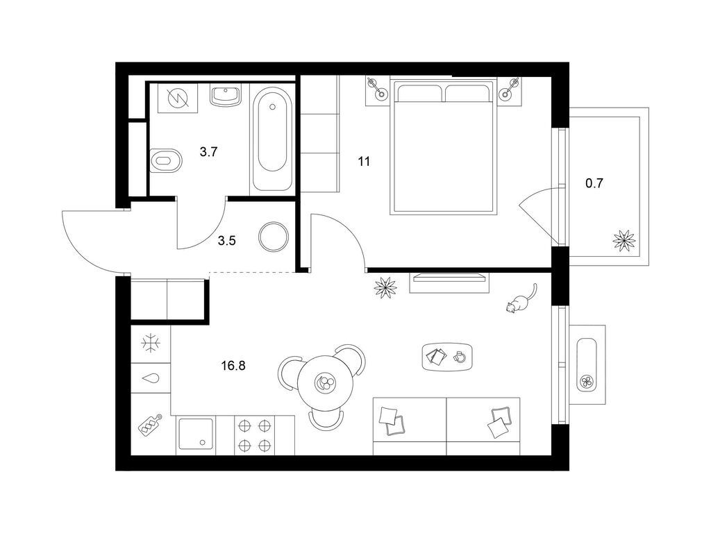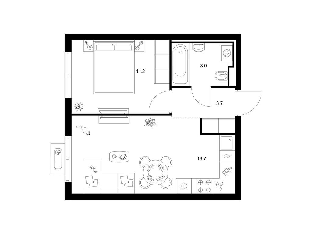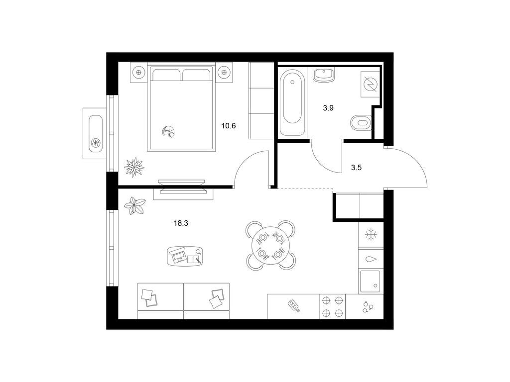 Студия (77 квартир, 21 планировка)