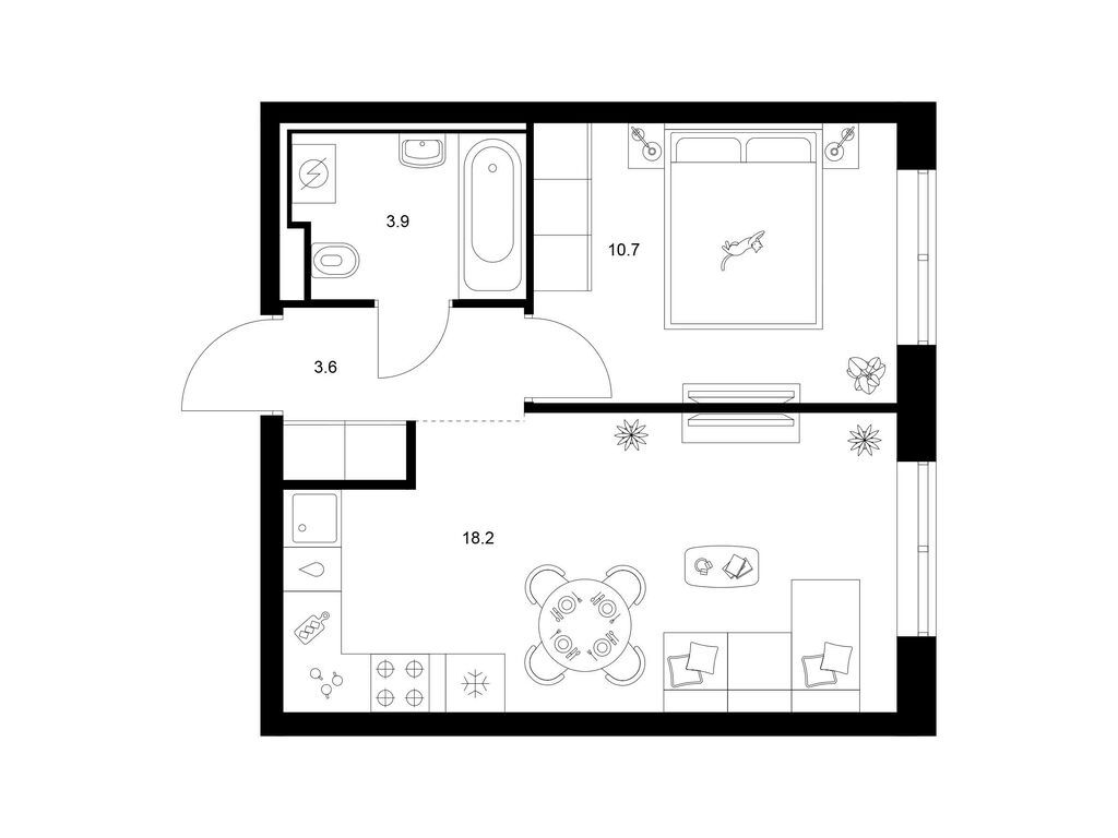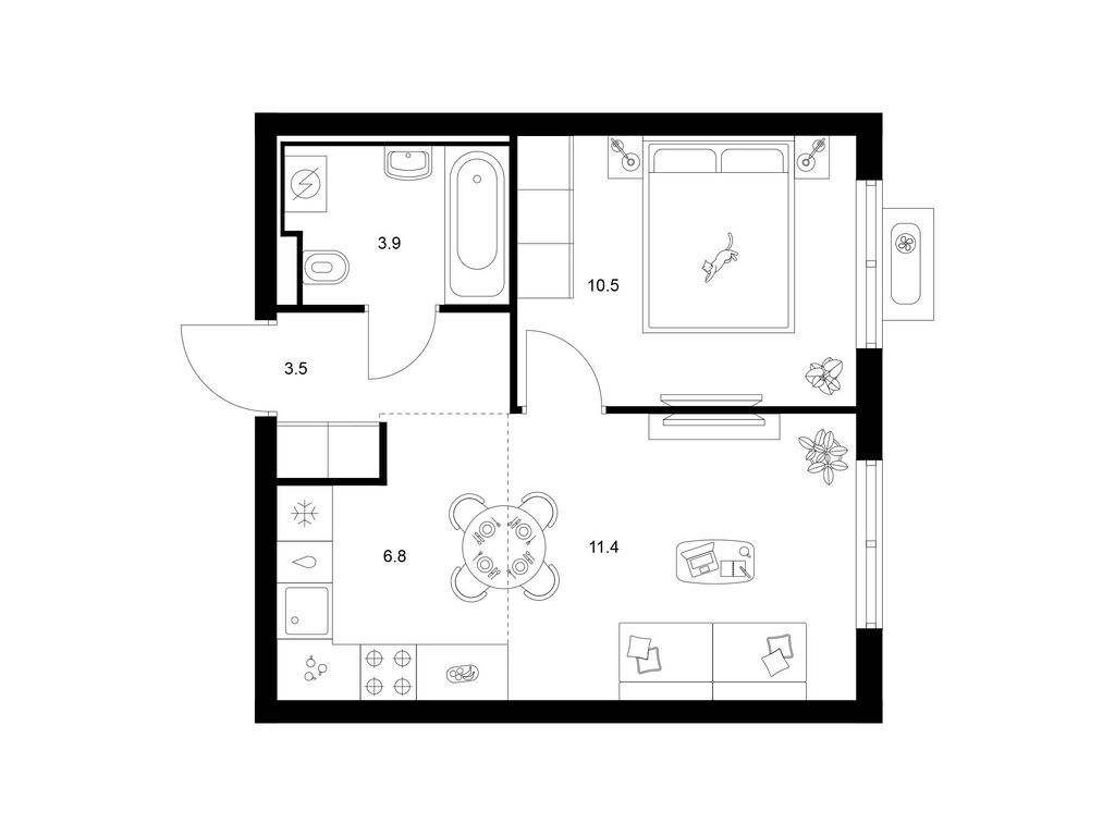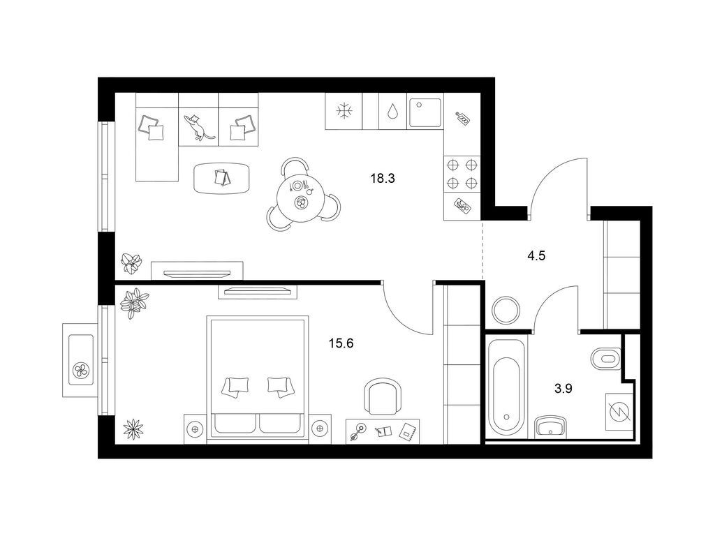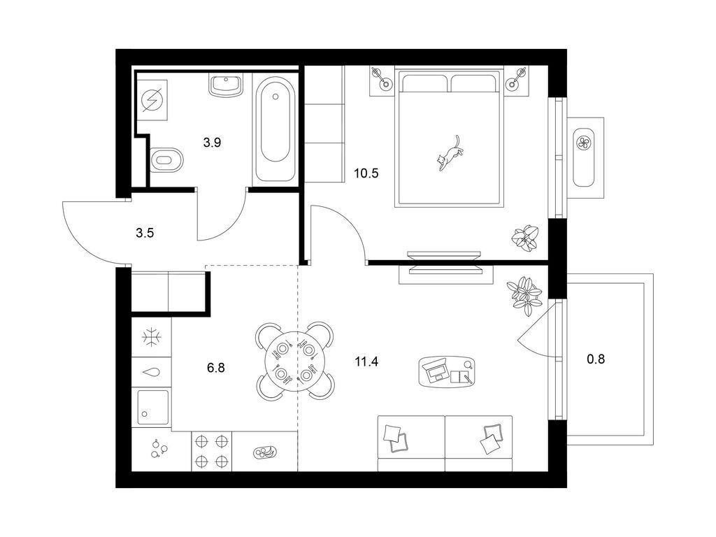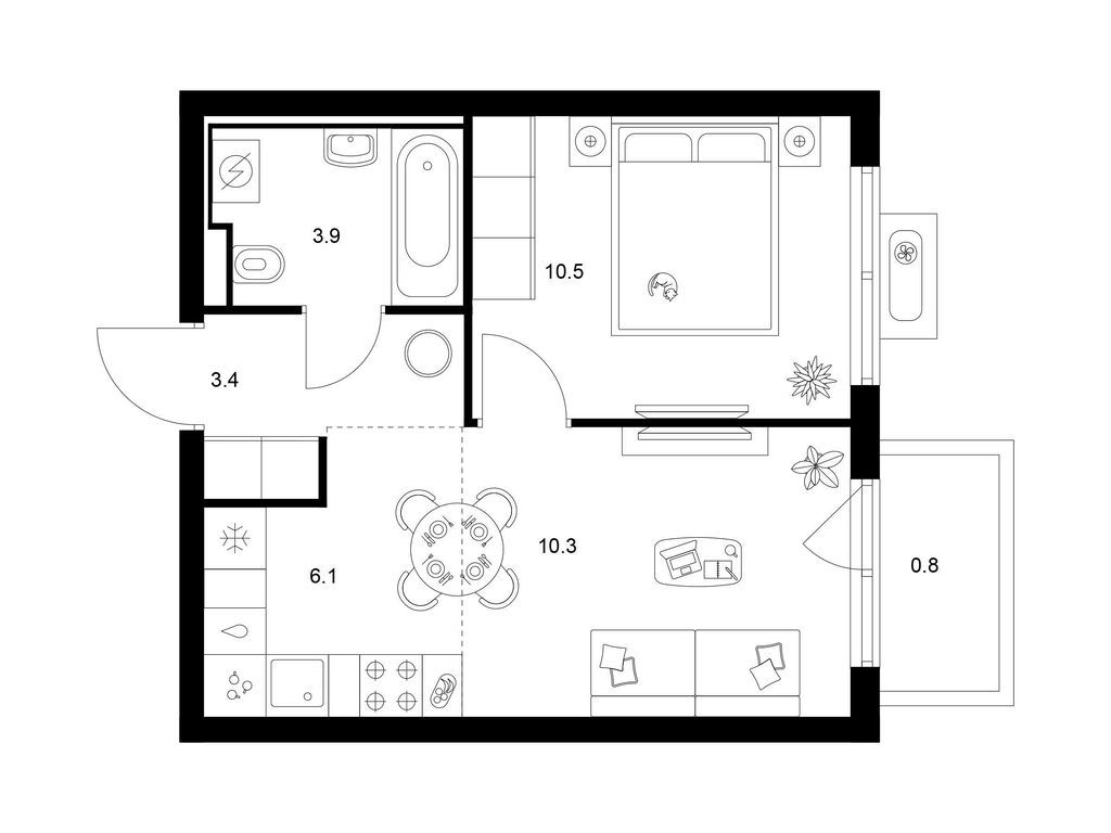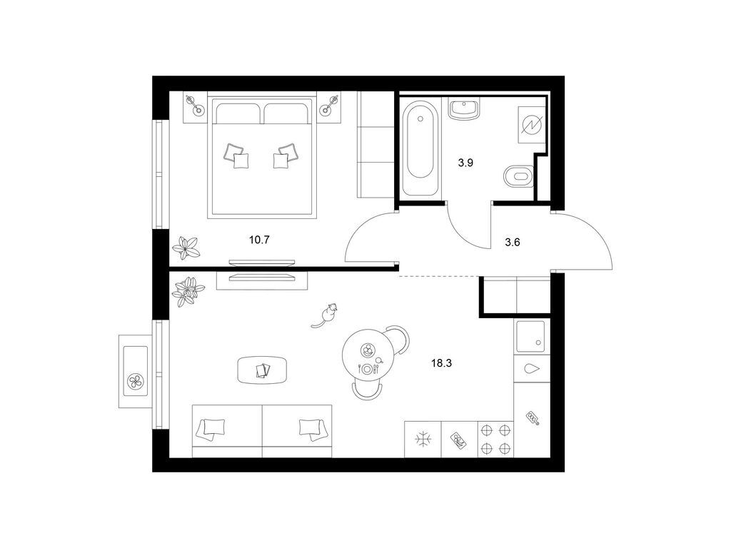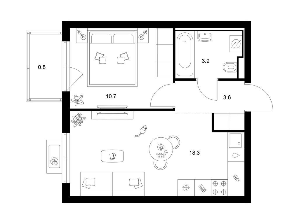 Студия (77 квартир, 21 планировка)