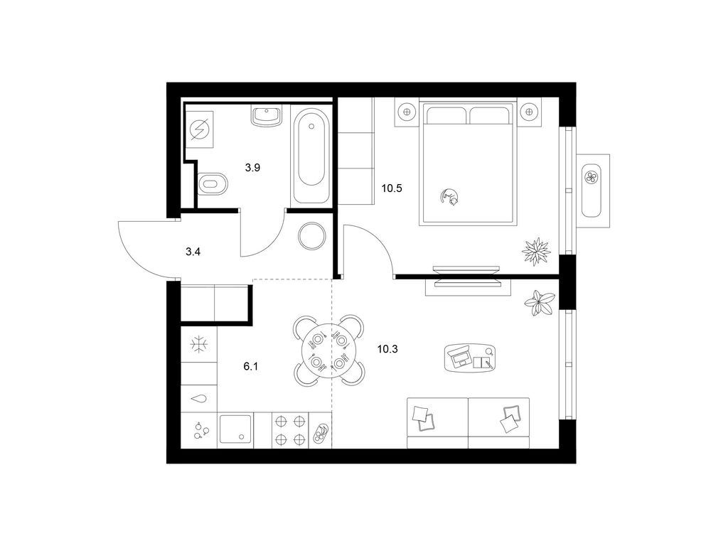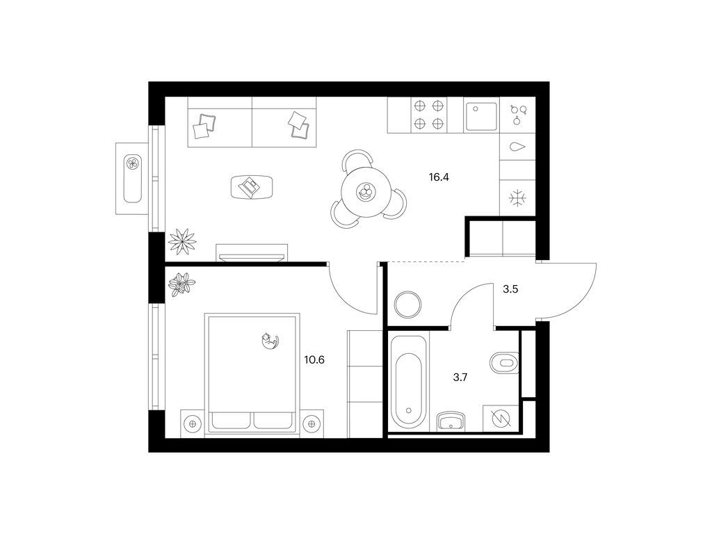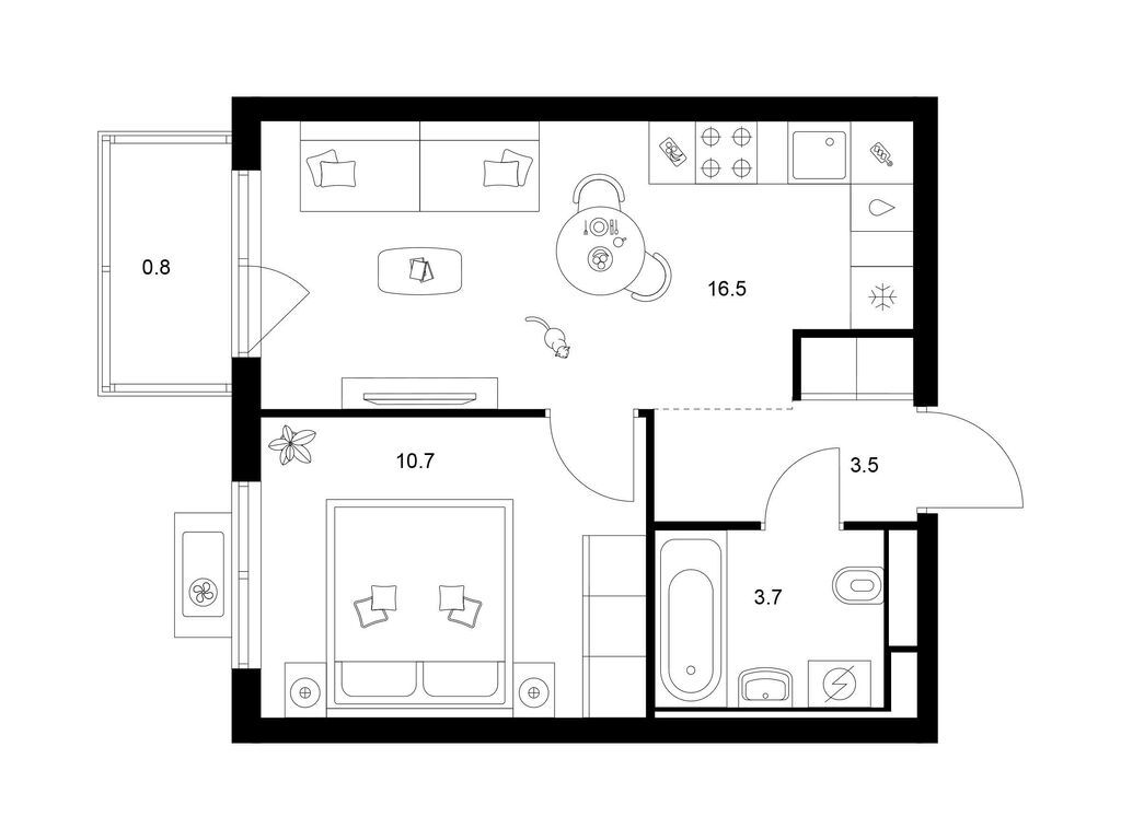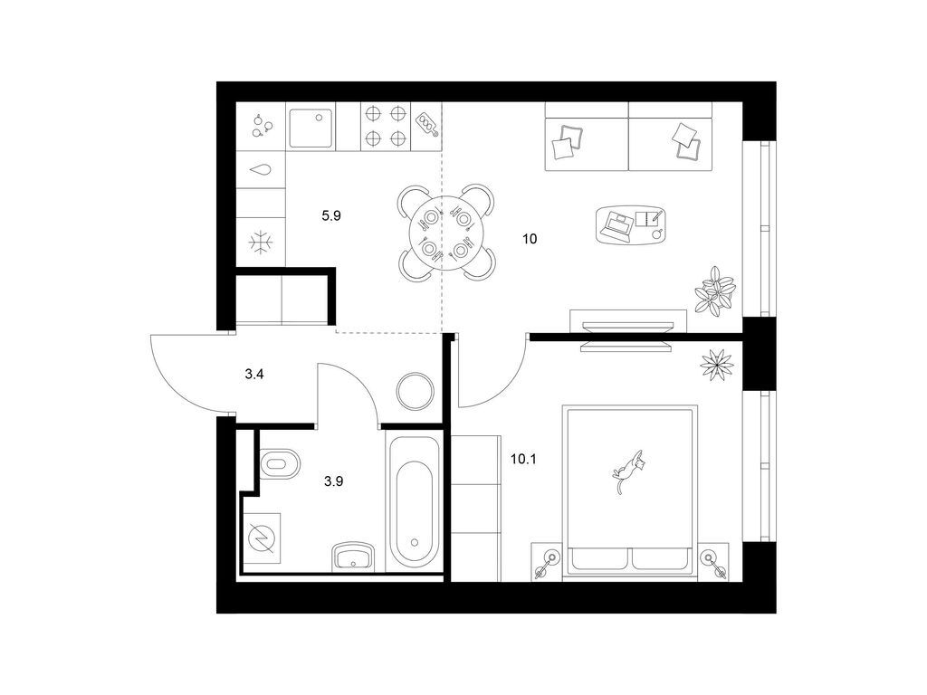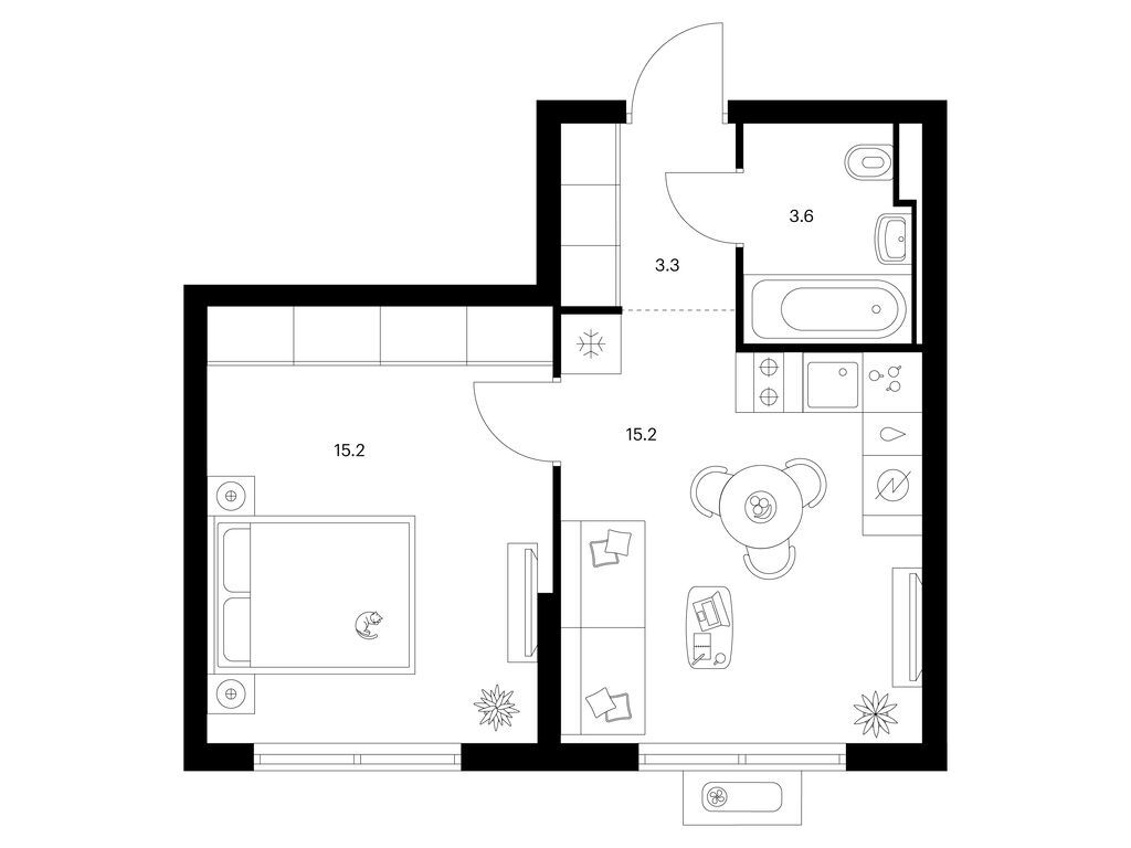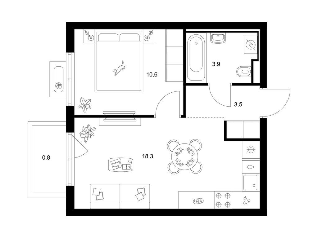 Студия (77 квартир, 21 планировка)