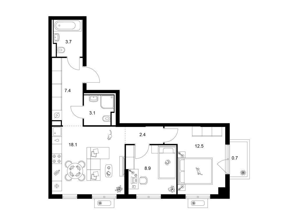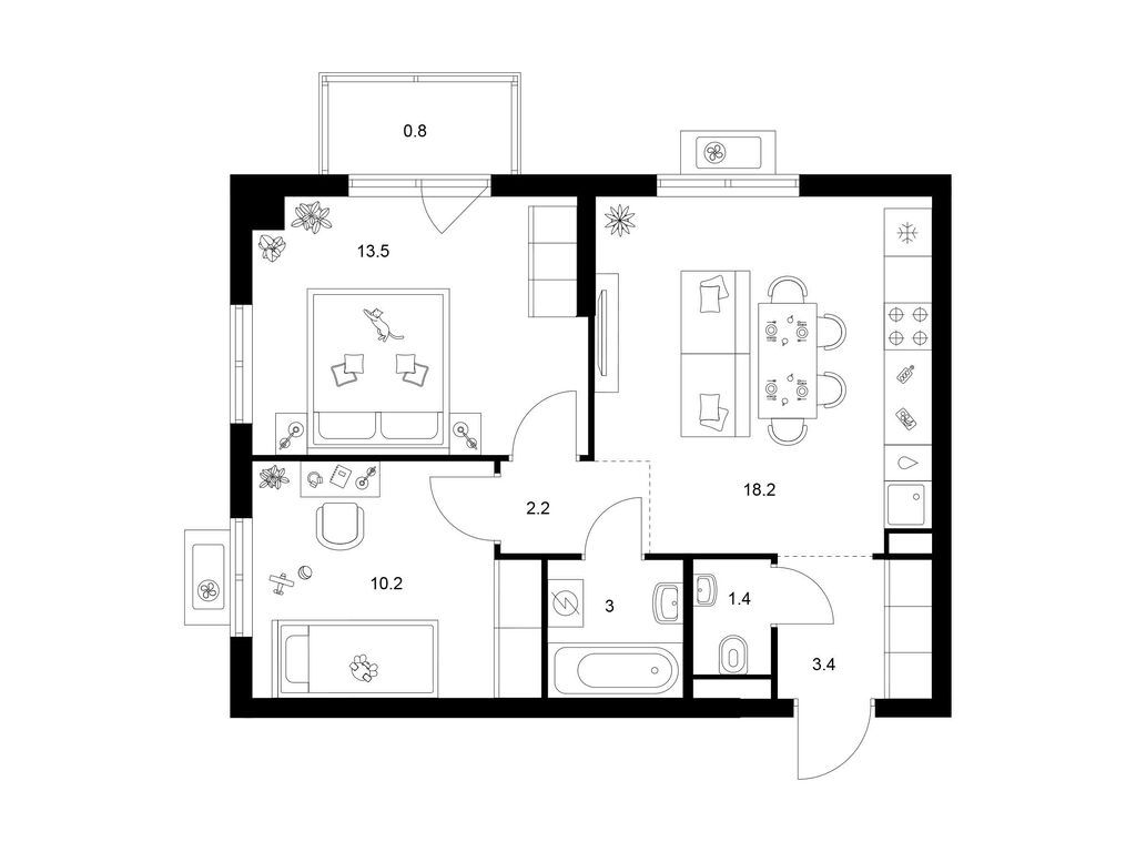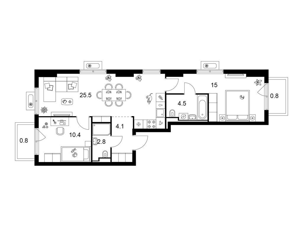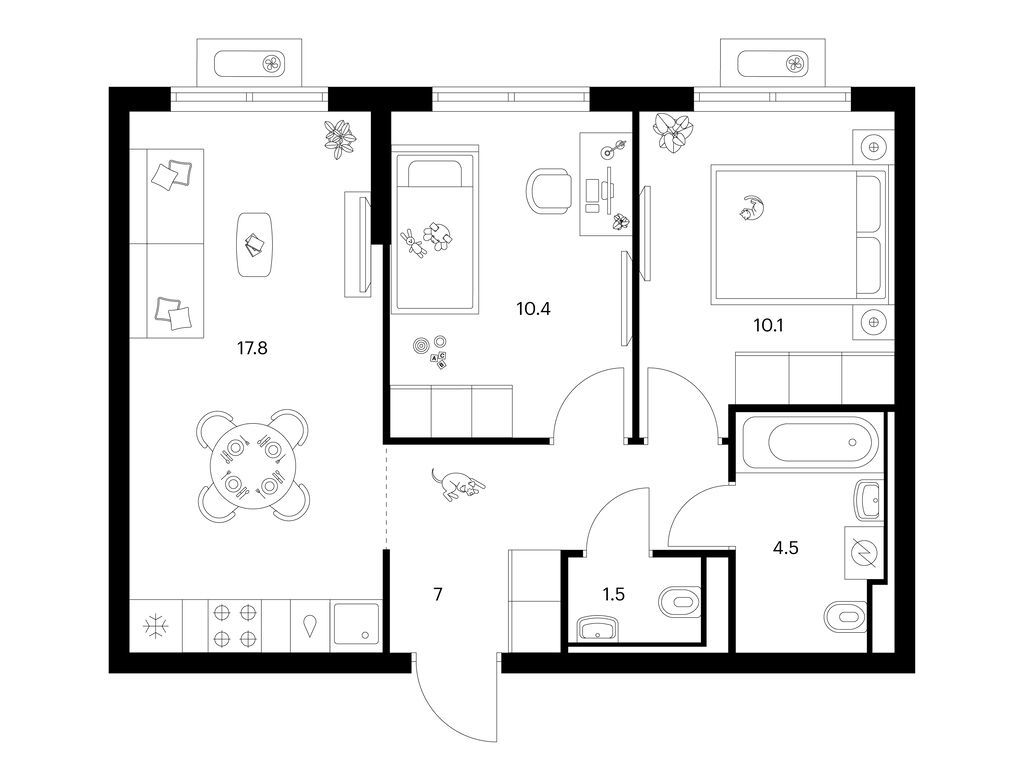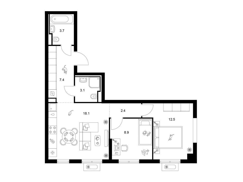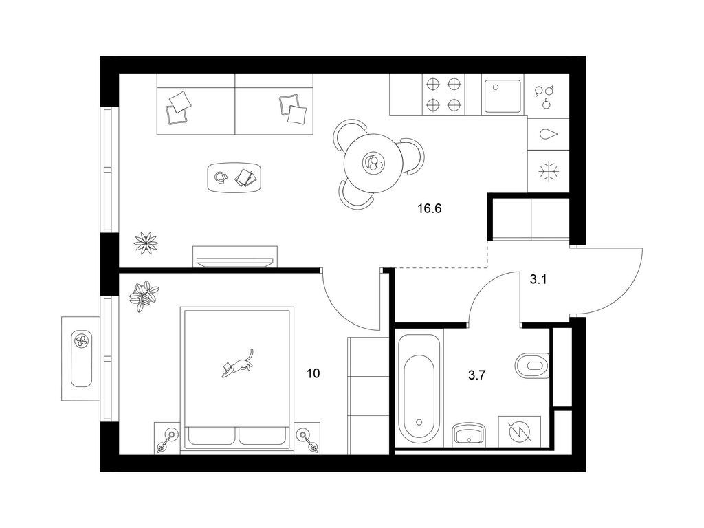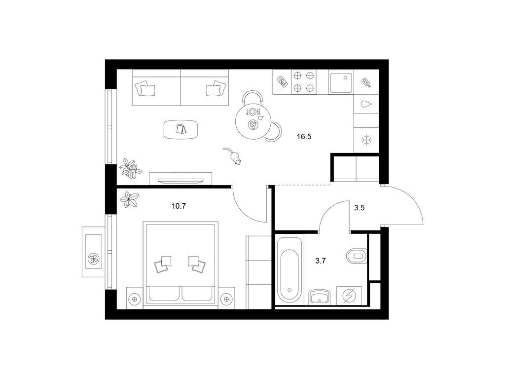 Студия (77 квартир, 21 планировка)