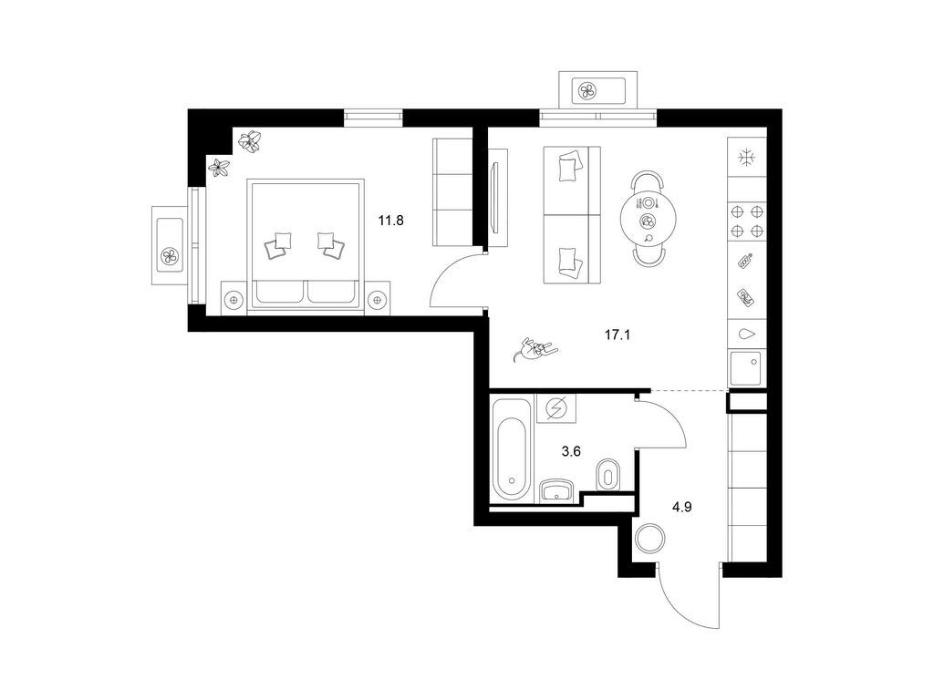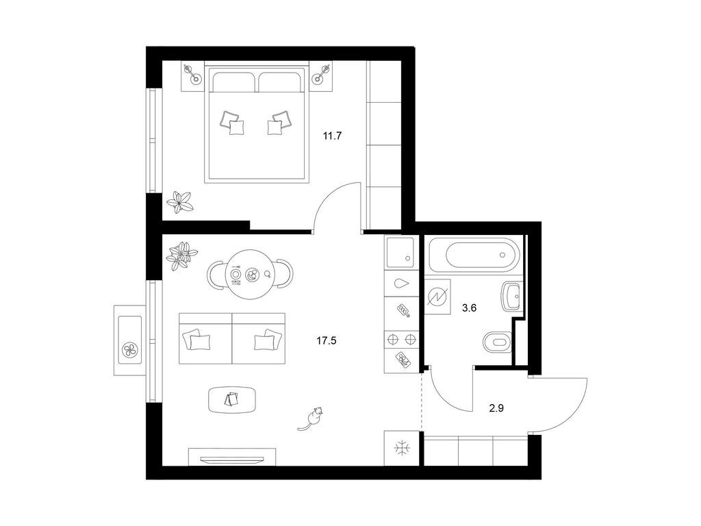 Однокомнатные квартиры (146 квартир, 54 планировки)
