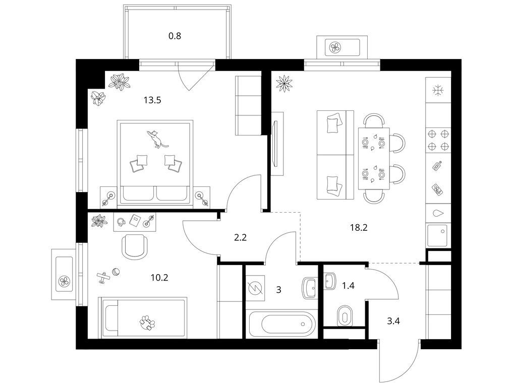 Однокомнатные квартиры (150 квартир, 54 планировки)