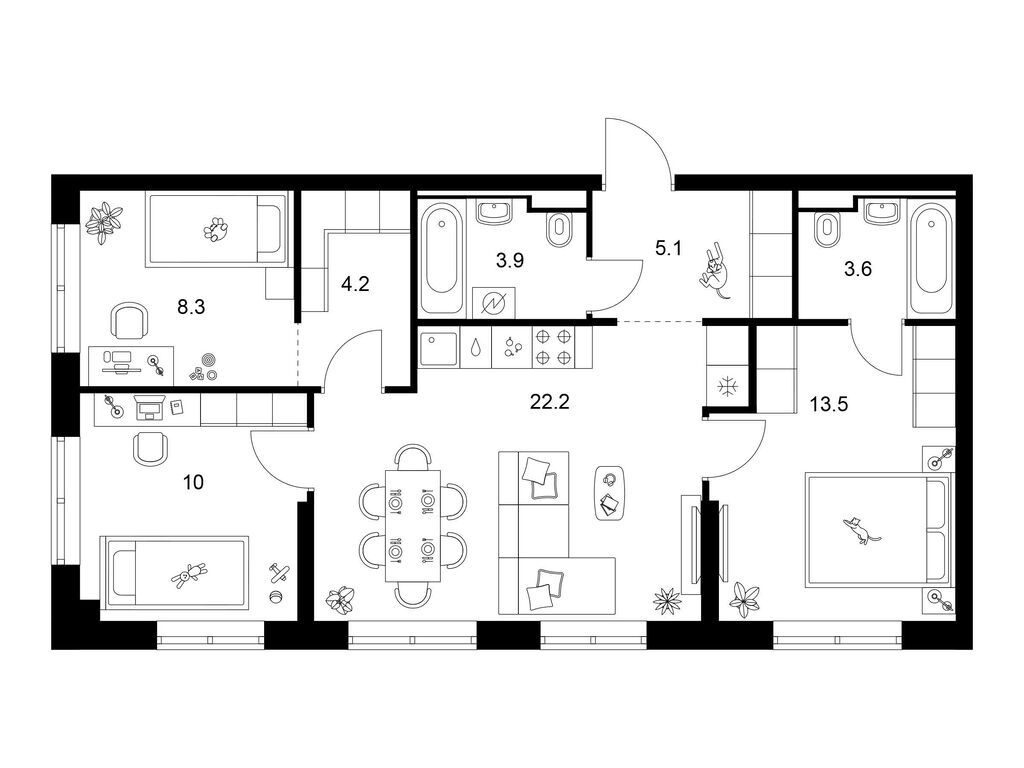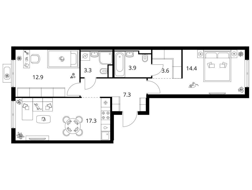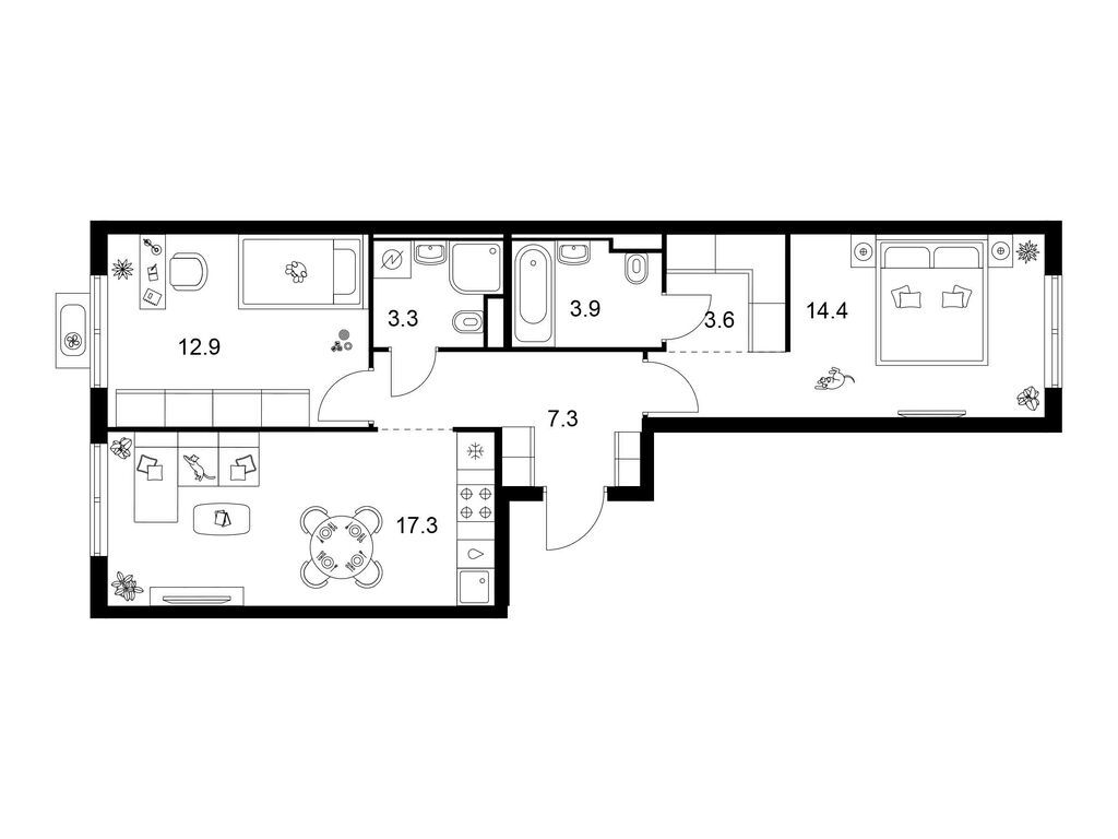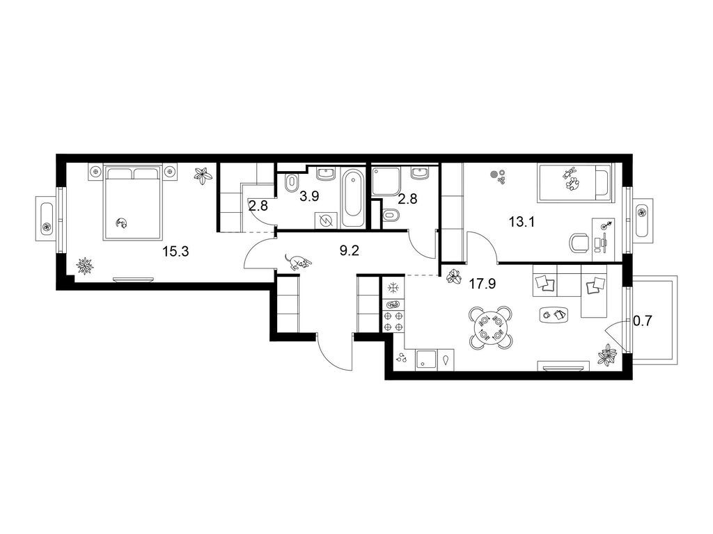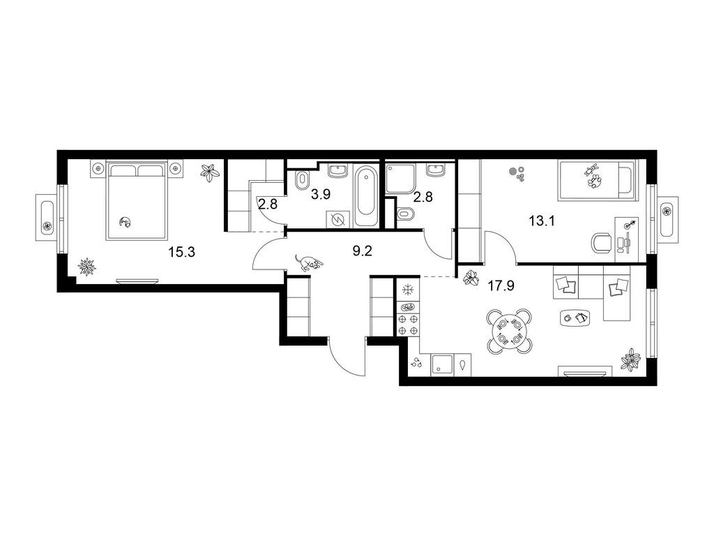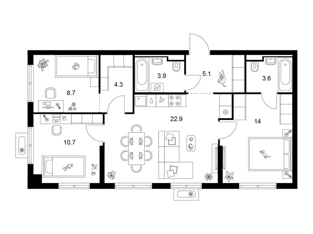Трехкомнатные квартиры (20 квартир, 11 планировок)