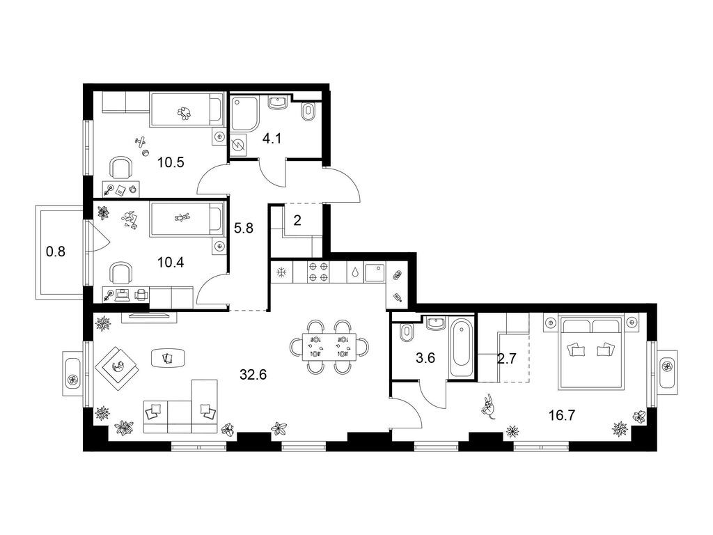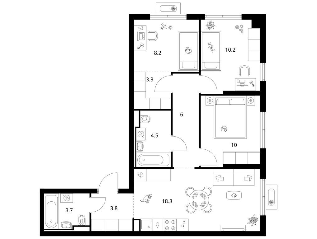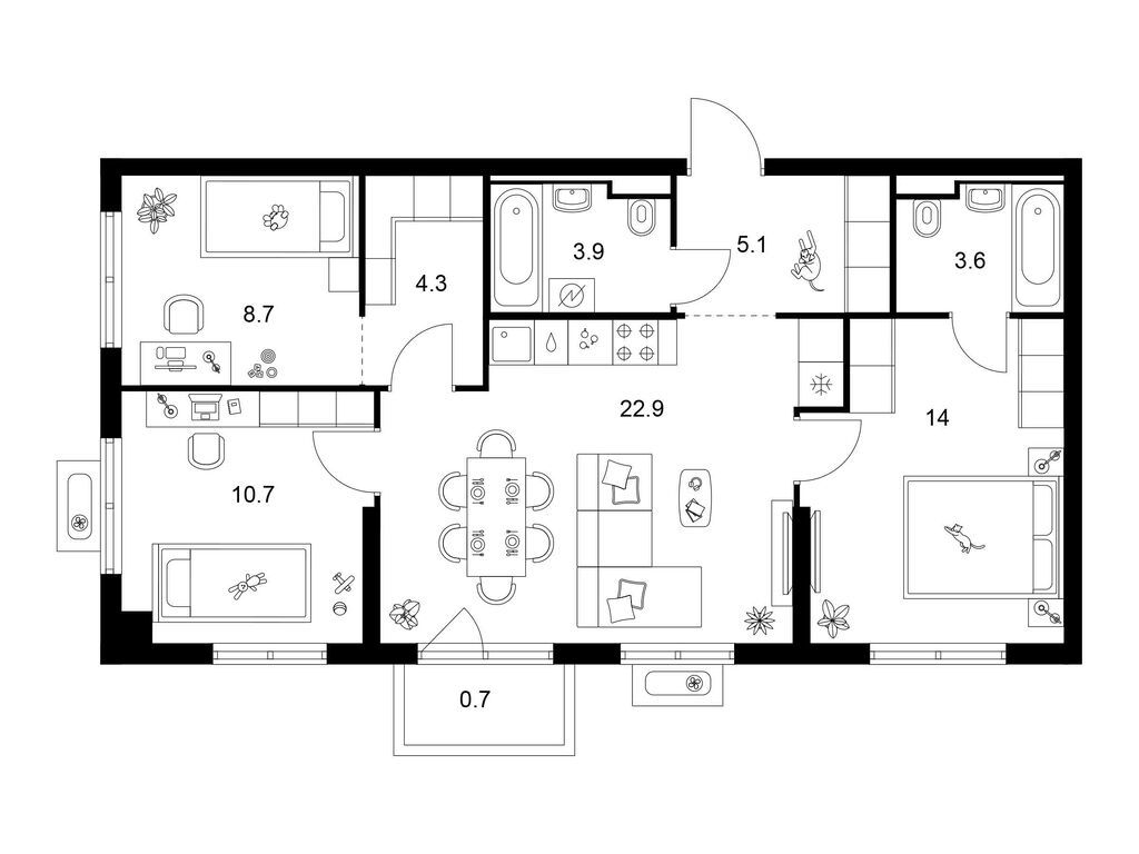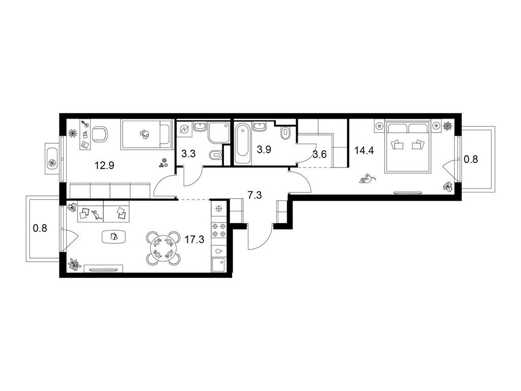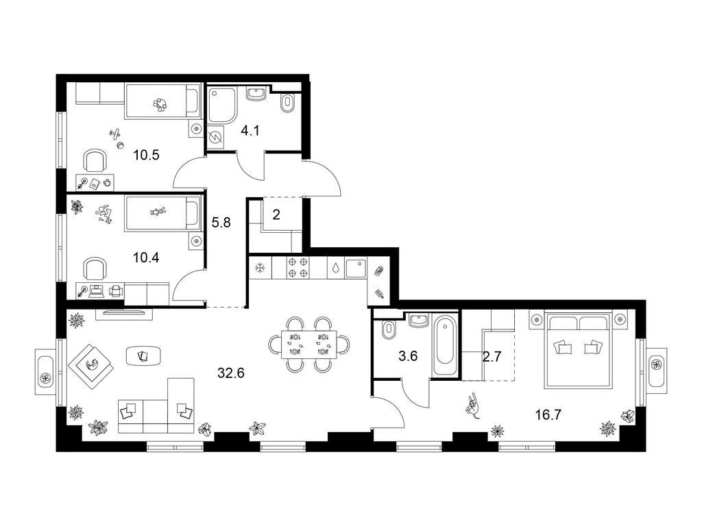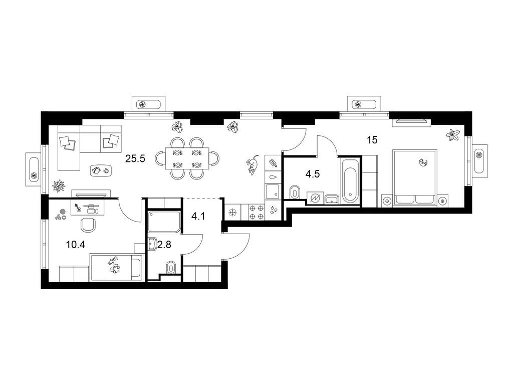 Трехкомнатные квартиры (20 квартир, 11 планировок)