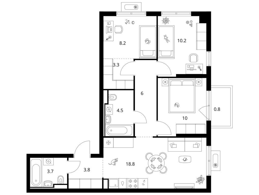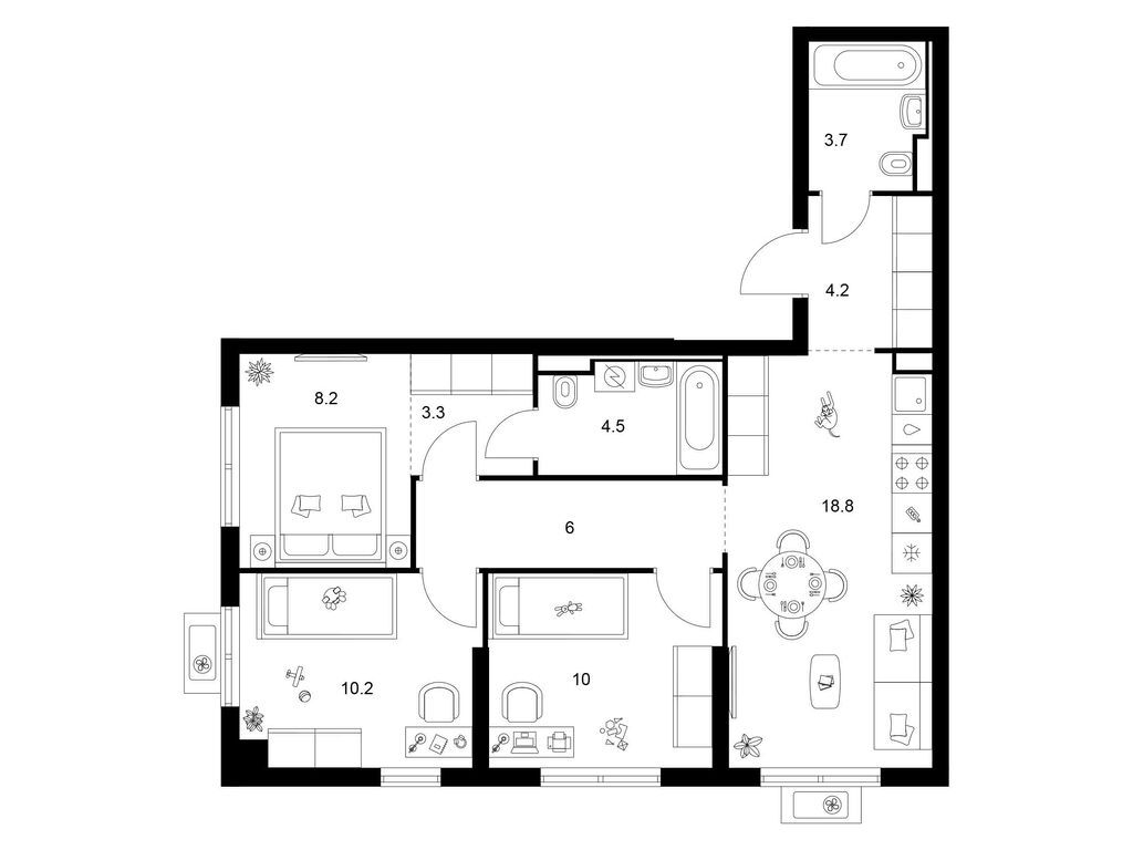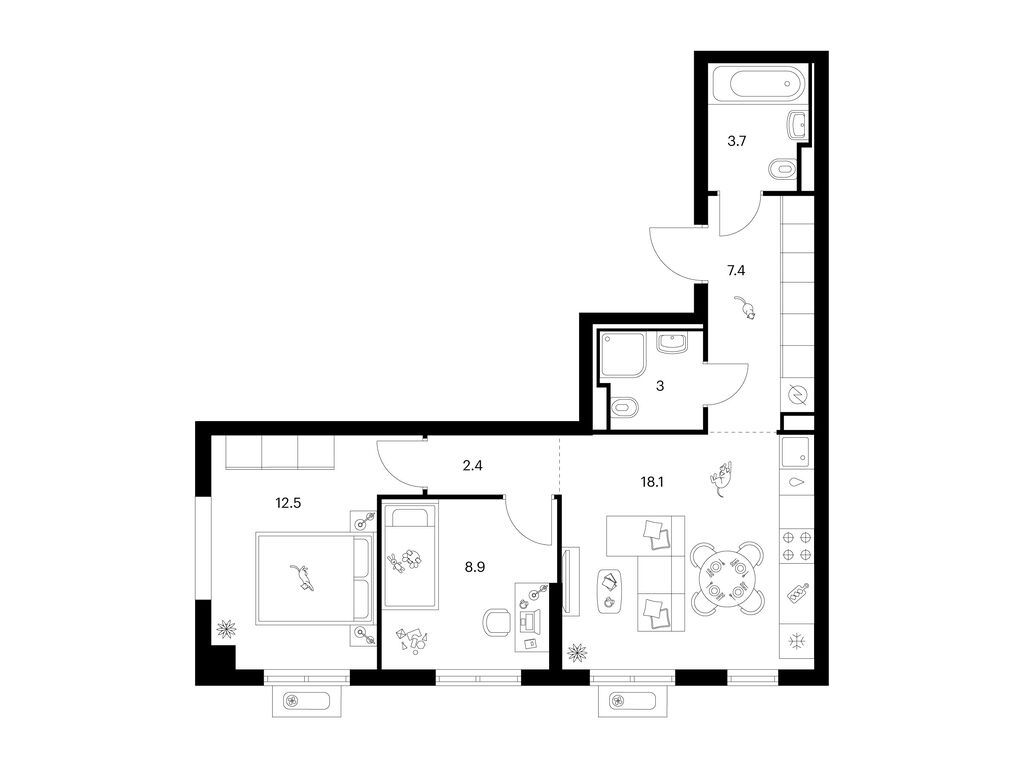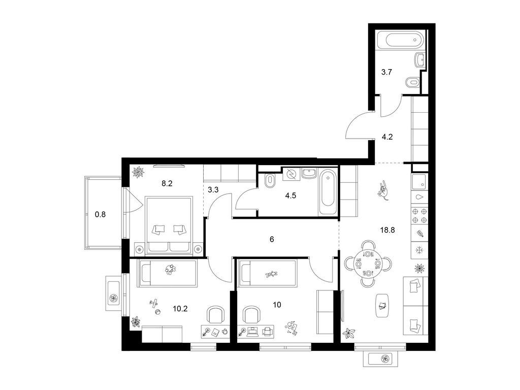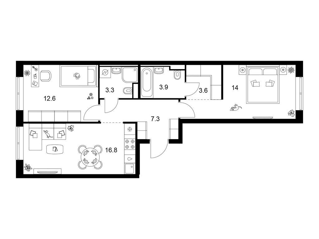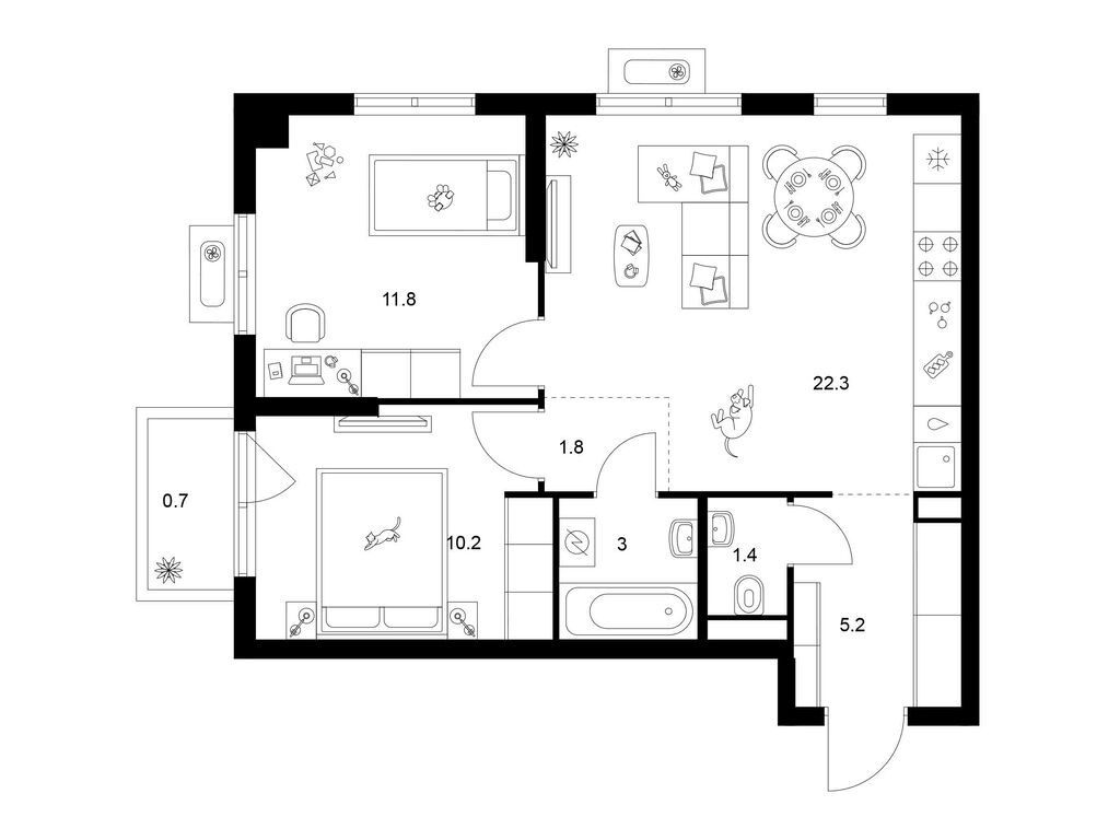 Трехкомнатные квартиры (20 квартир, 11 планировок)