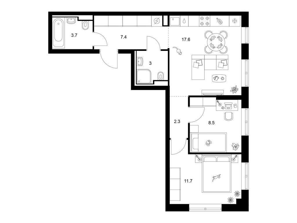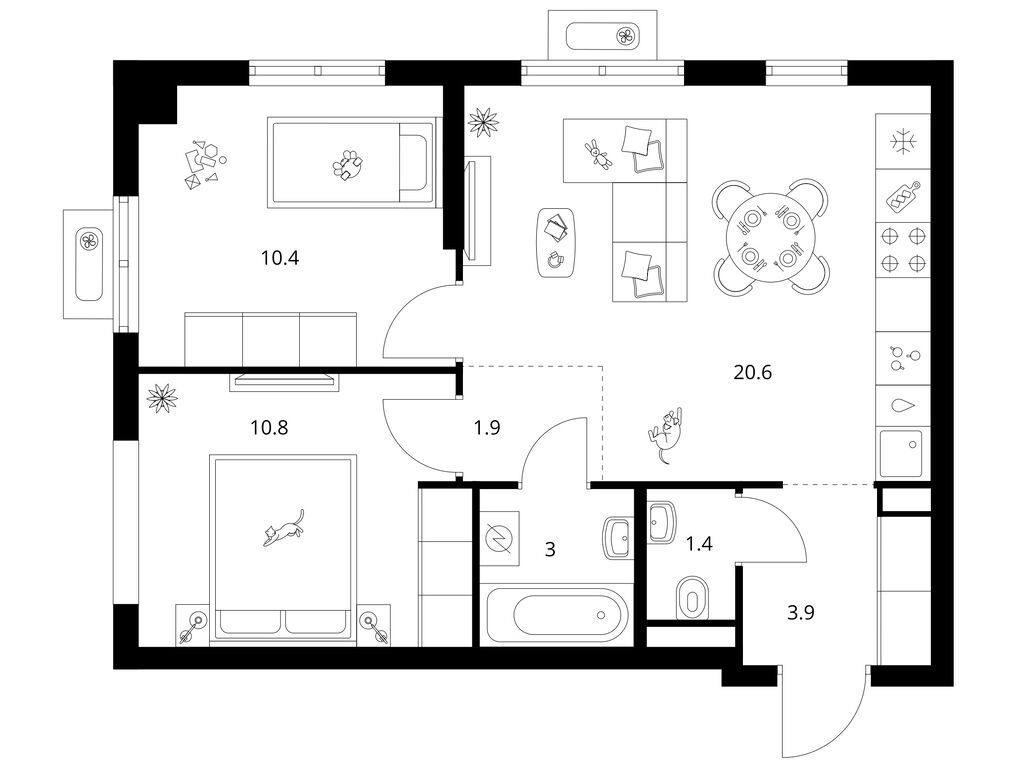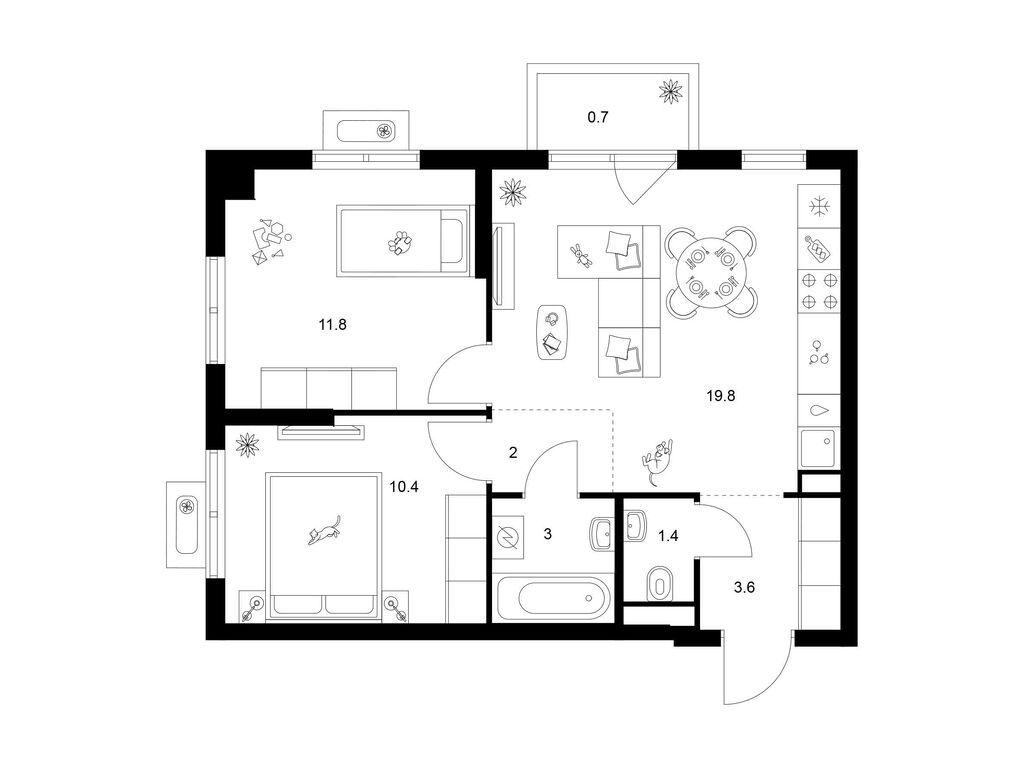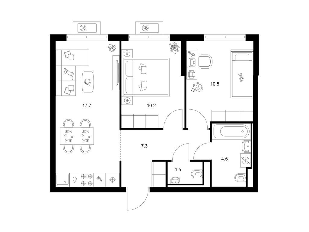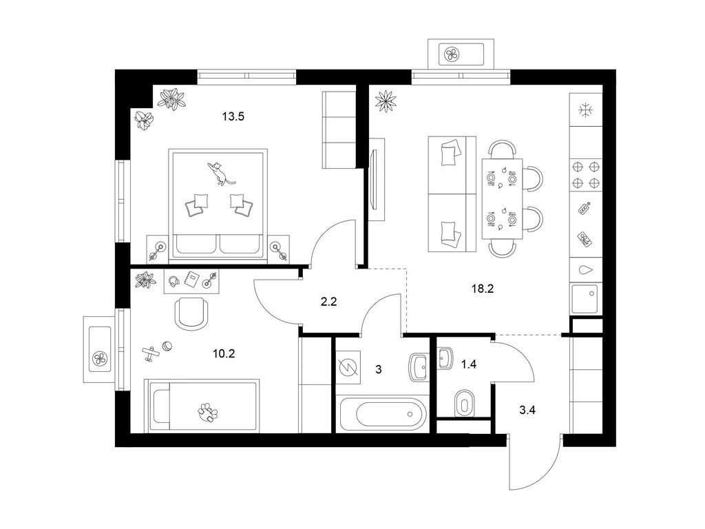 Двухкомнатные квартиры (89 квартир, 42 планировки)