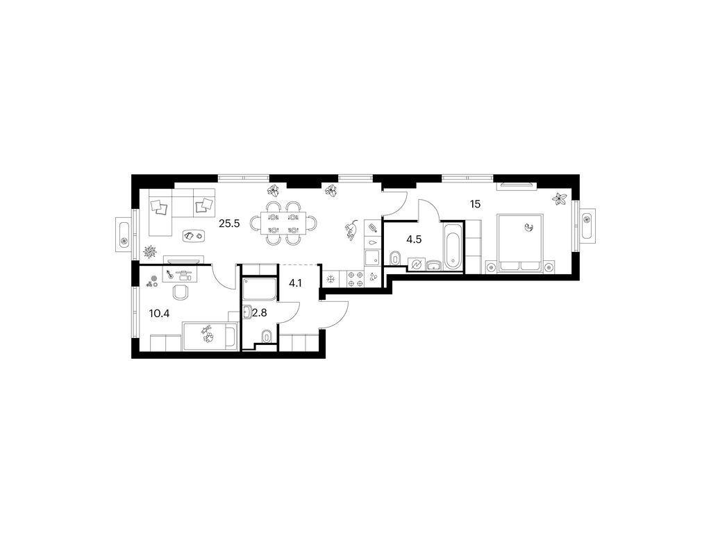 Студия (77 квартир, 20 планировок)
