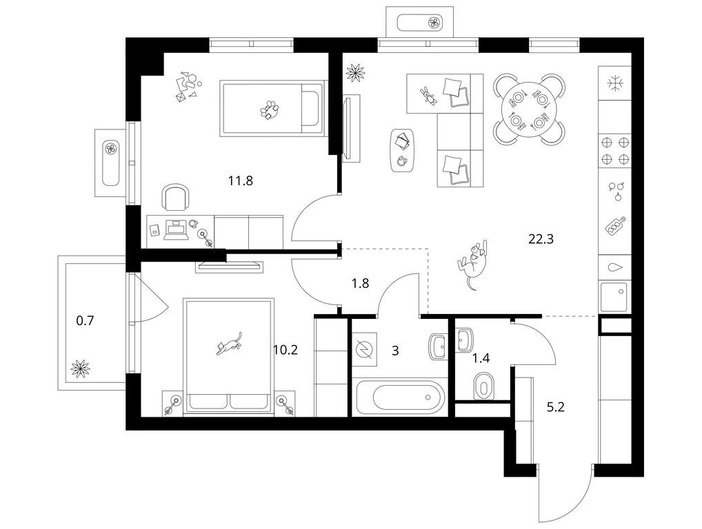 Двухкомнатные квартиры (87 квартир, 42 планировки)