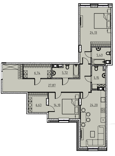 Трехкомнатные квартиры (1 квартира, 1 планировка)