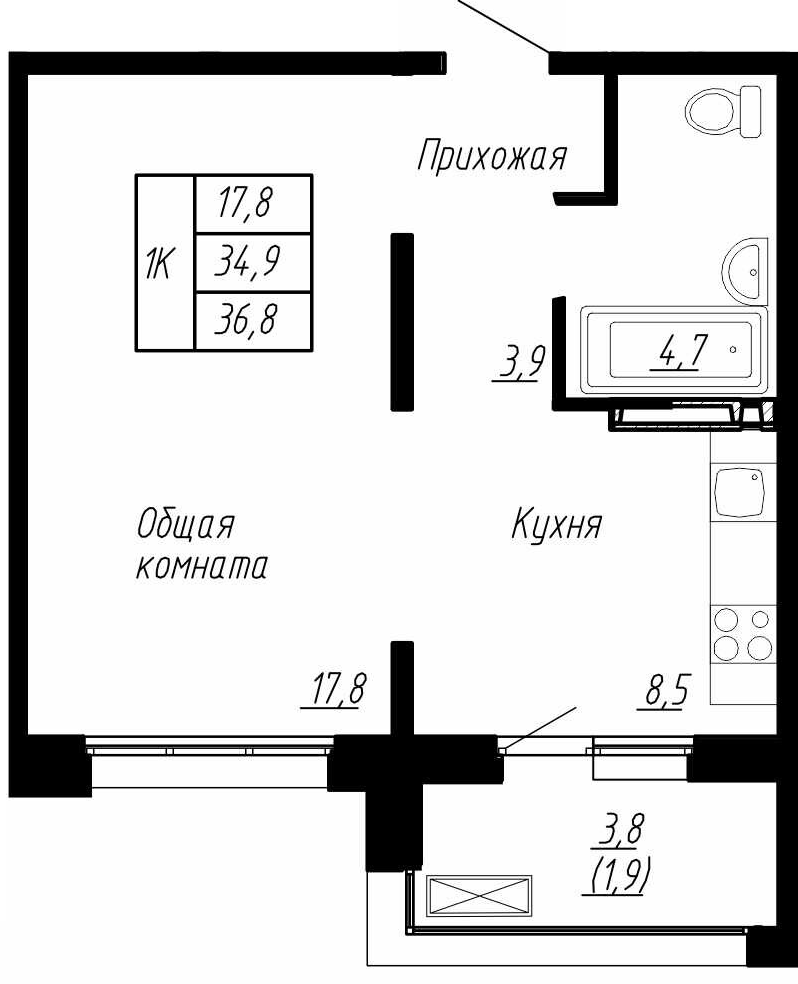 Однокомнатные квартиры (9 квартир, 9 планировок)
