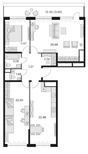 Трехкомнатные квартиры (3 квартиры, 3 планировки)