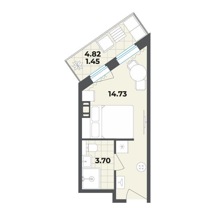 Однокомнатные апартаменты (3 апартаментов, 3 планировки)