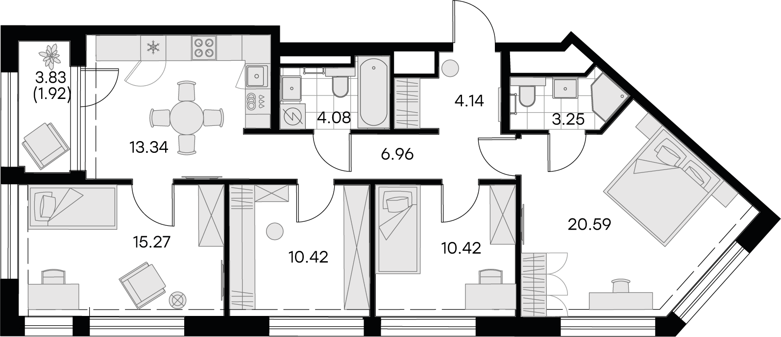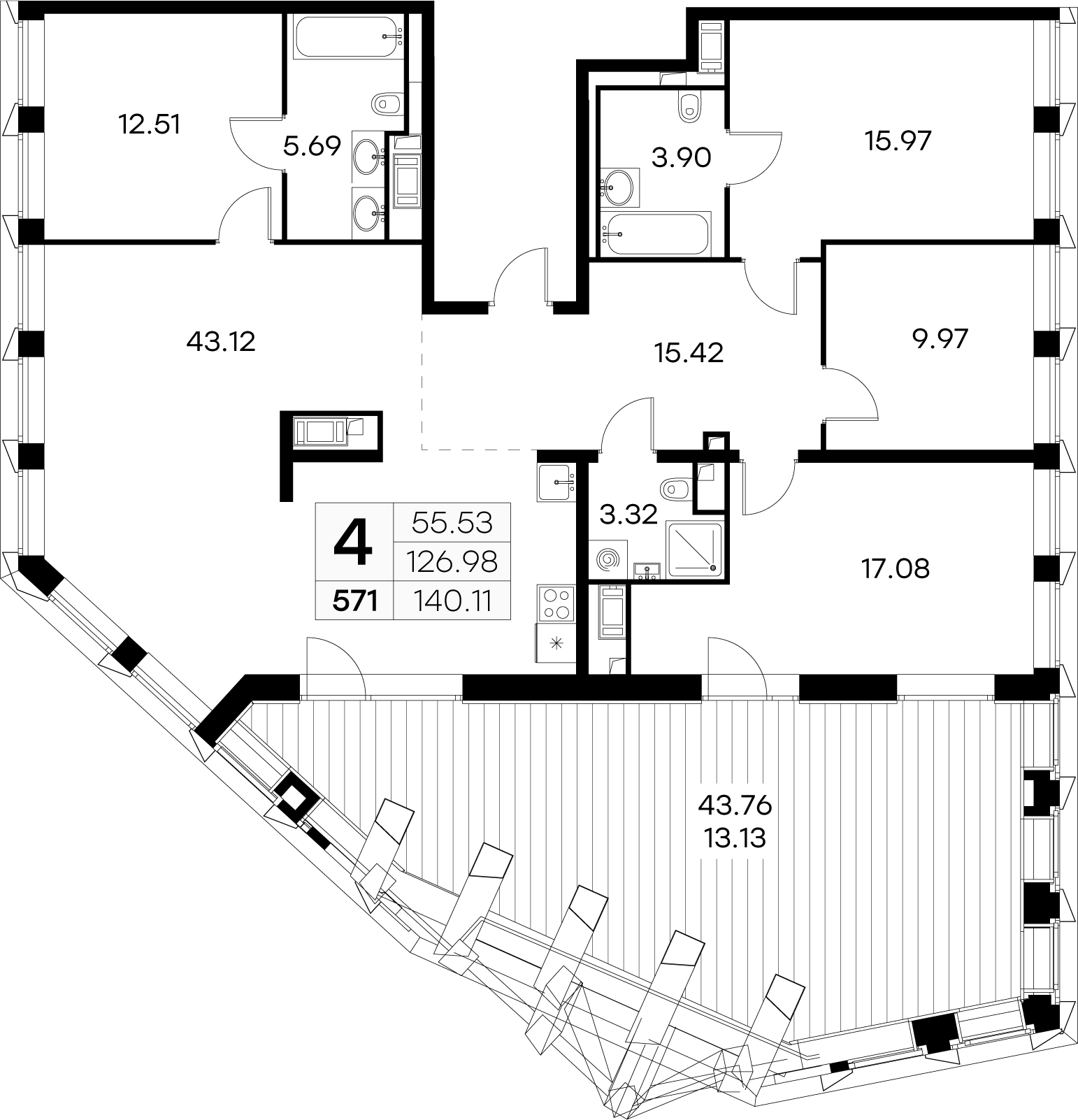 Четырехкомнатные квартиры (3 квартиры, 3 планировки)